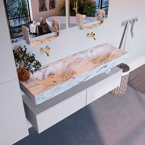 - Vrijhangende wastafel met 2 wasbakken
