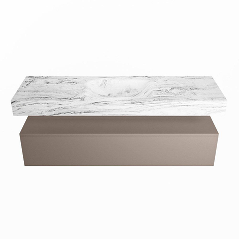 MONDIAZ ALAN - DLUX Badkamermeubelset - 150cm - onderkast - Smoke - 1 lade - vrijhangende wastafel - wasbak midden - 1 kraangat - Glace