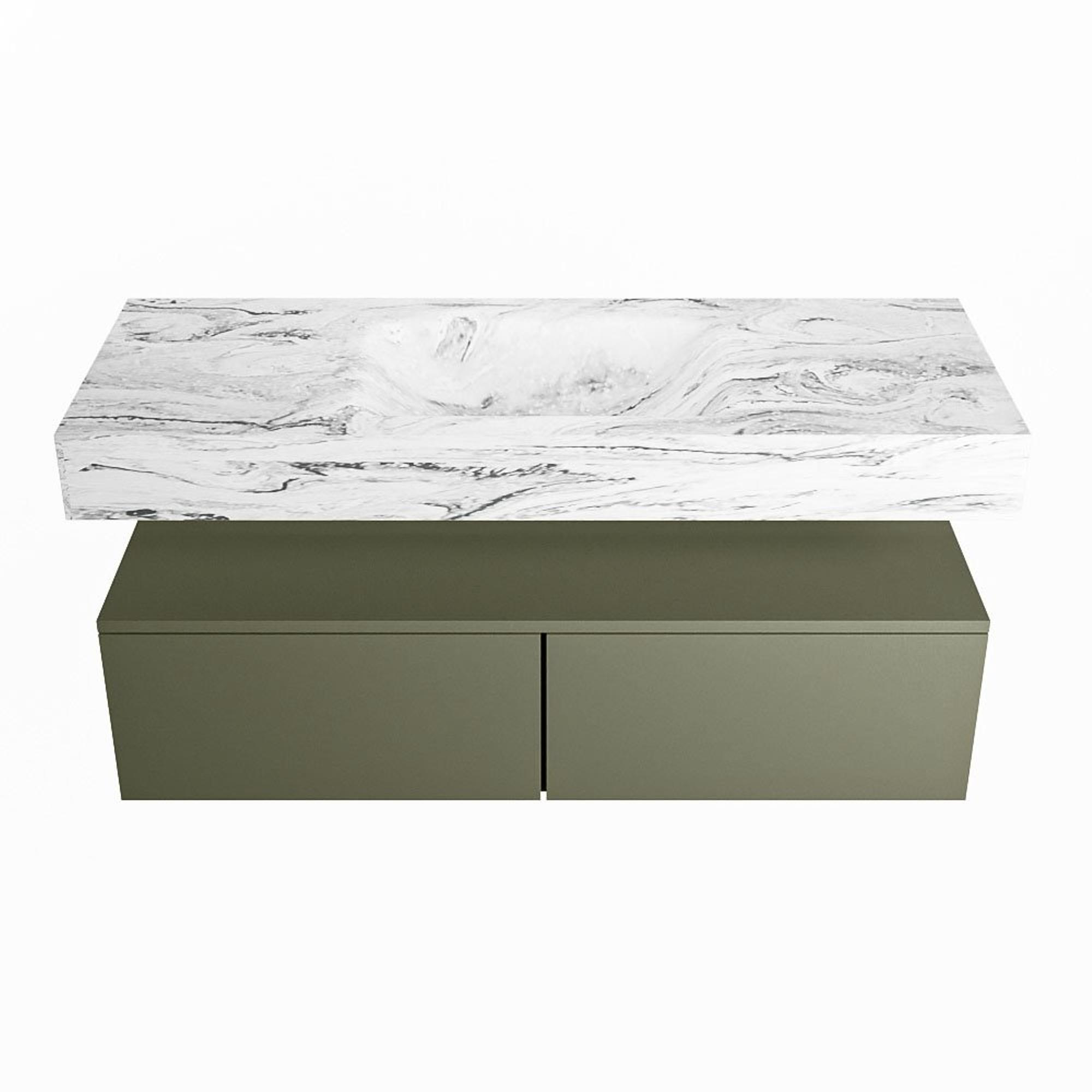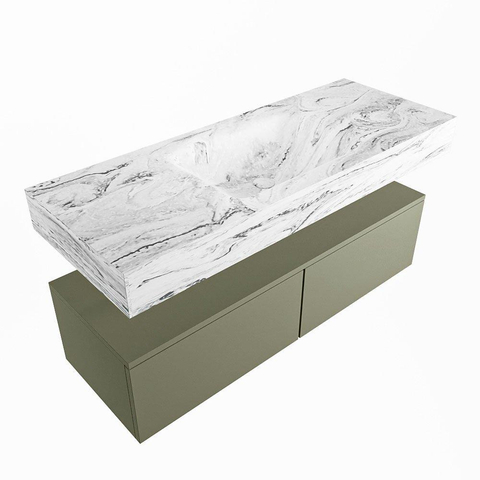 MONDIAZ ALAN - DLUX Badkamermeubelset - 120cm - onderkast - Army - 2 lades - vrijhangende wastafel - wasbak midden - 0 kraangaten - Glace