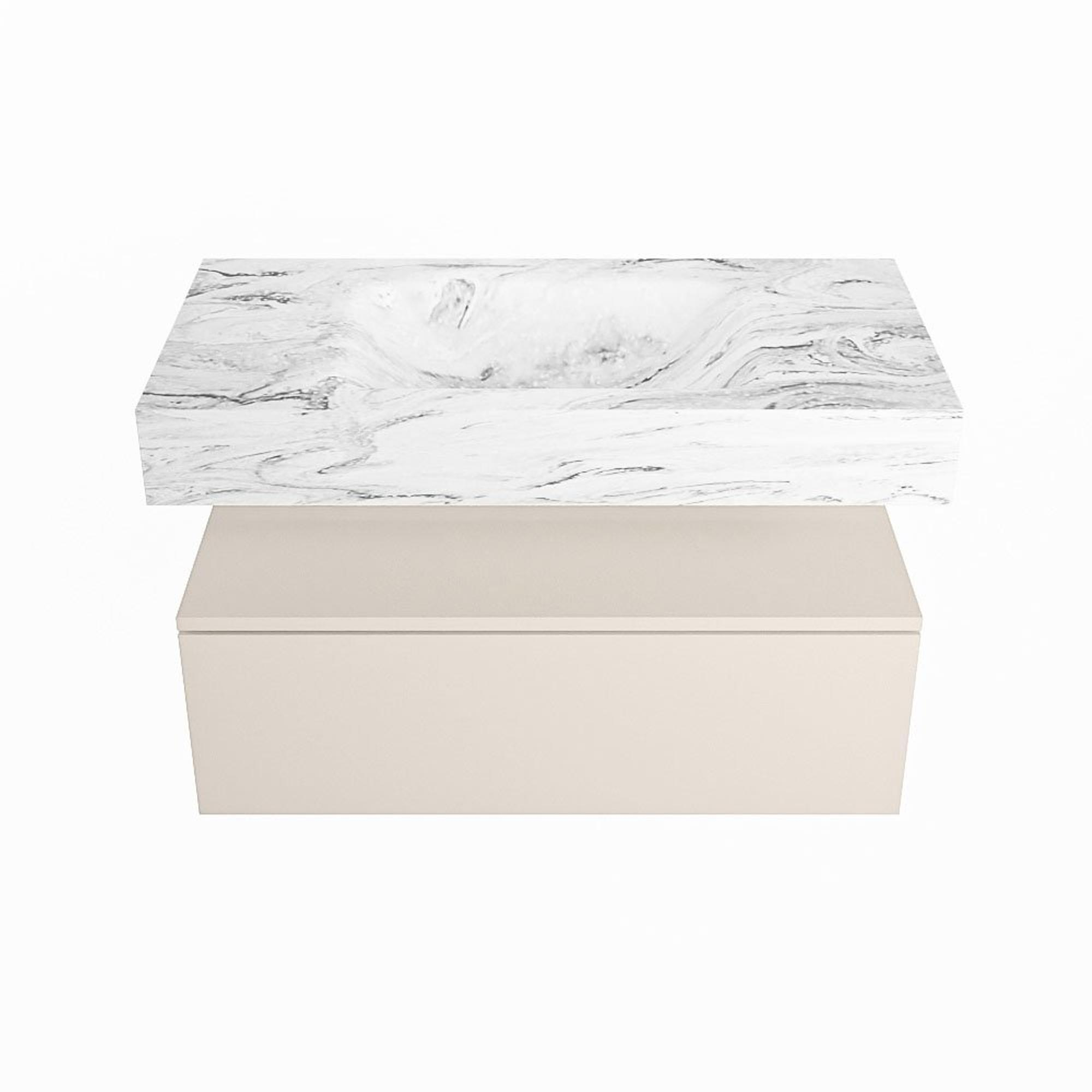 MONDIAZ ALAN - DLUX Badkamermeubelset - 90cm - onderkast - Linen - 1 lade - vrijhangende wastafel - wasbak midden - 0 kraangaten - Glace