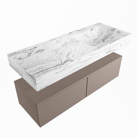 MONDIAZ ALAN - DLUX Badkamermeubelset - 120cm - onderkast - Smoke - 2 lades - vrijhangende wastafel - wasbak rechts - 1 kraangat - Glace