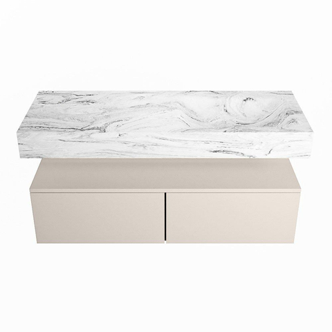 MONDIAZ ALAN - DLUX Badkamermeubelset - 120cm - onderkast - Linen - 2 lades - vrijhangende wastafel - wasbak rechts - 1 kraangat - Glace