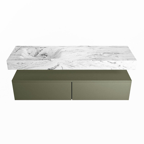 MONDIAZ ALAN - DLUX Badkamermeubelset - 150cm - onderkast - Army - 2 lades - vrijhangende wastafel - wasbak links - 1 kraangat - Glace
