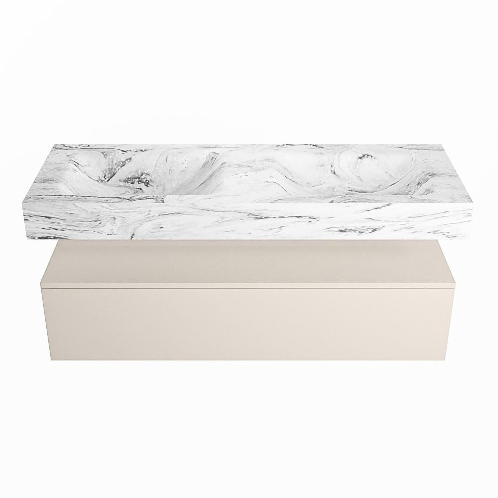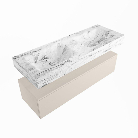 MONDIAZ ALAN - DLUX Badkamermeubelset - 130cm - onderkast - Linen - 1 lade - vrijhangende wastafel - 2 wasbakken - 2 kraangaten - Glace