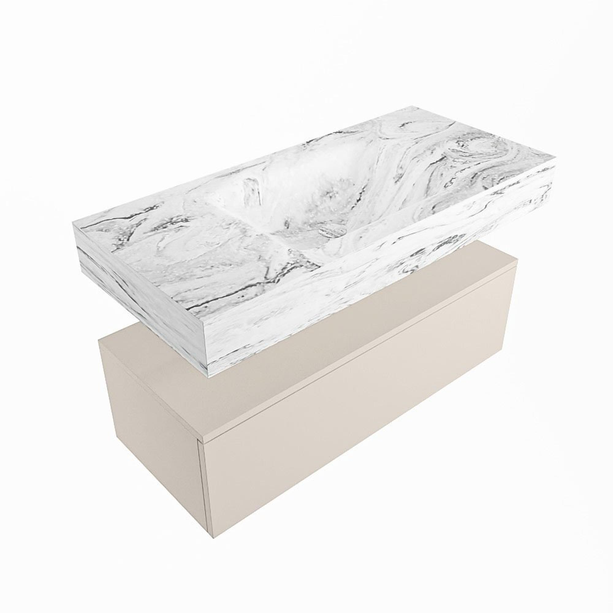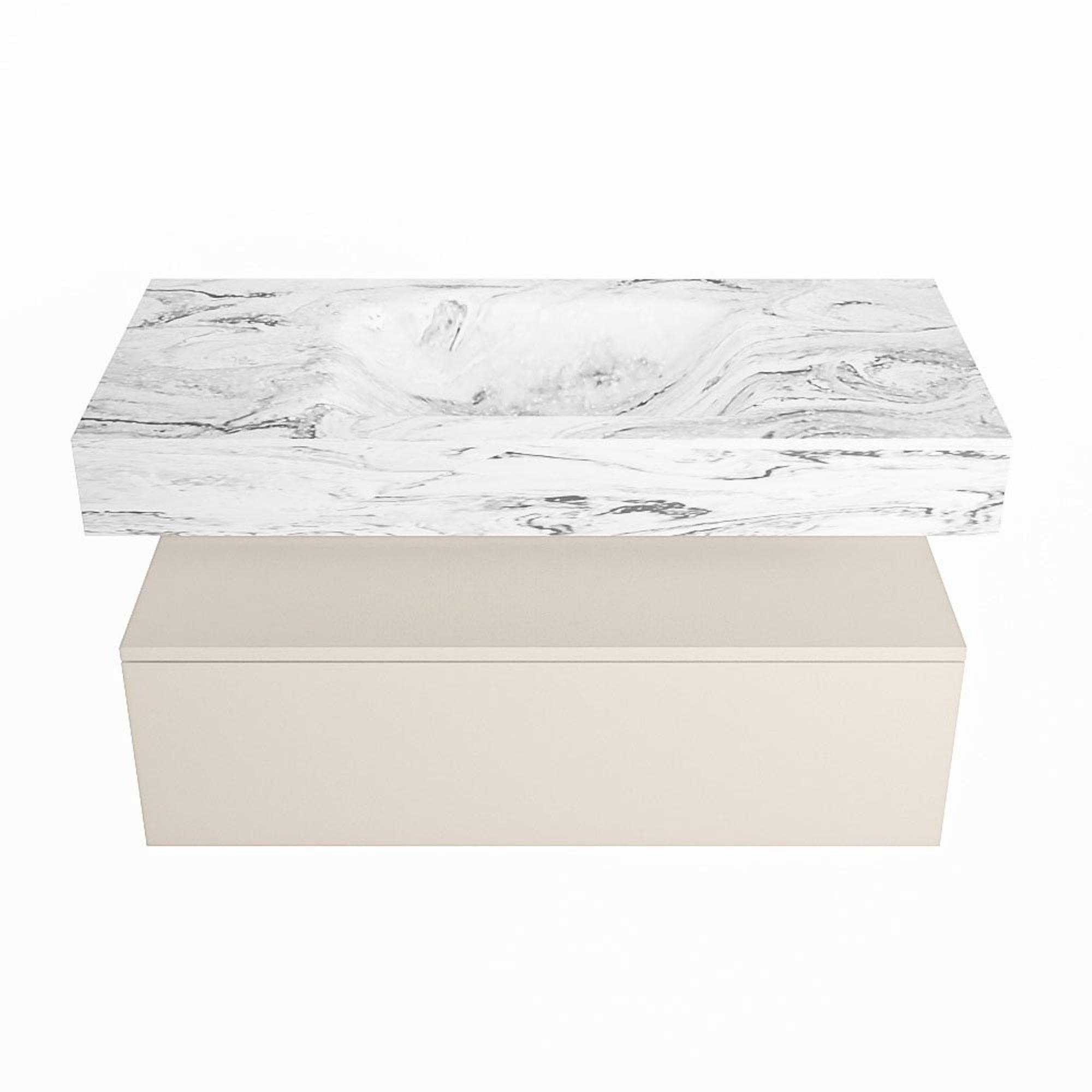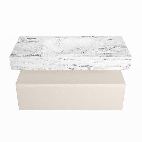 MONDIAZ ALAN - DLUX Badkamermeubelset - 100cm - onderkast - Linen - 1 lade - vrijhangende wastafel - wasbak midden - 0 kraangaten - Glace
