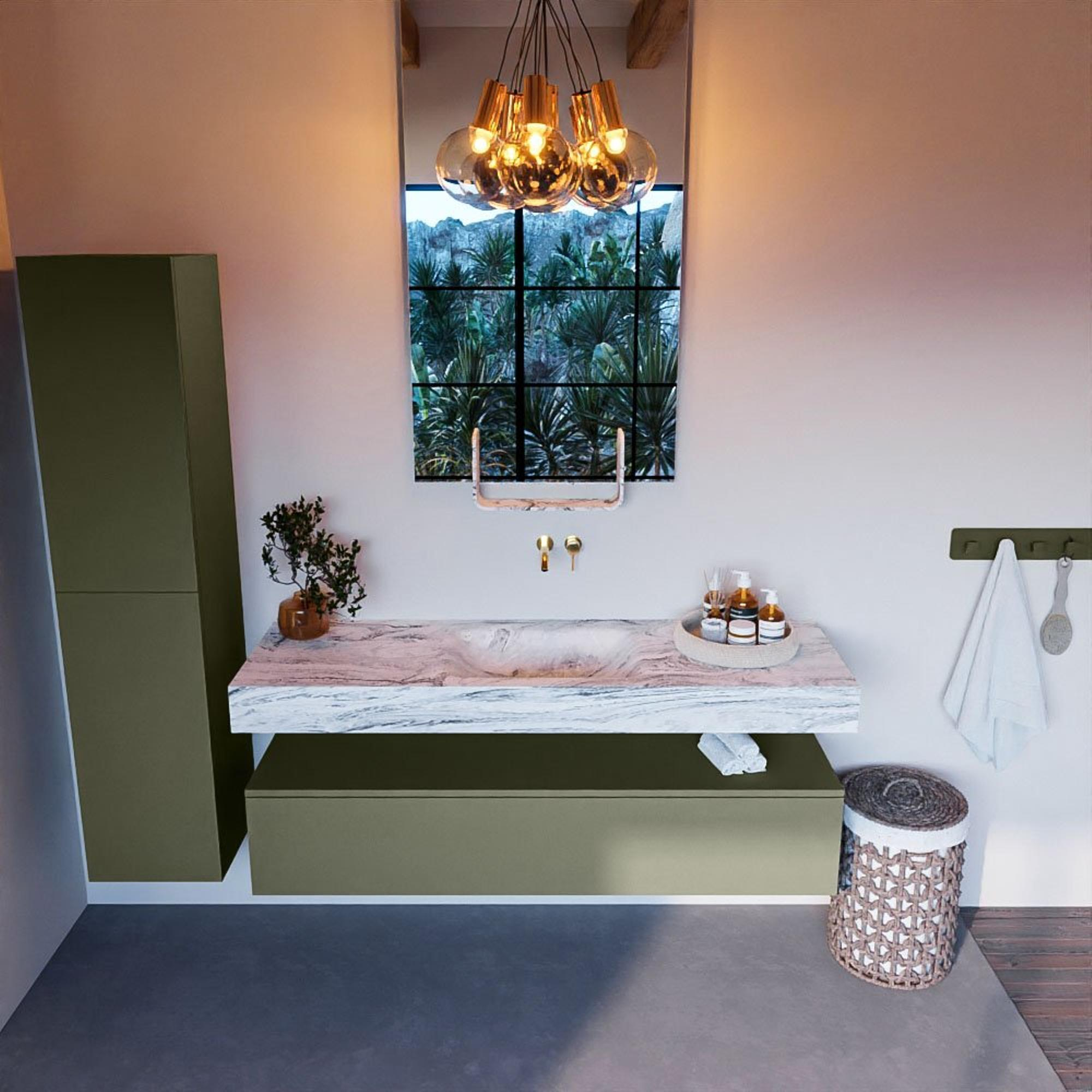 MONDIAZ ALAN - DLUX Badkamermeubelset - 150cm - onderkast - Army - 1 lade - vrijhangende wastafel - wasbak midden - 0 kraangaten - Glace