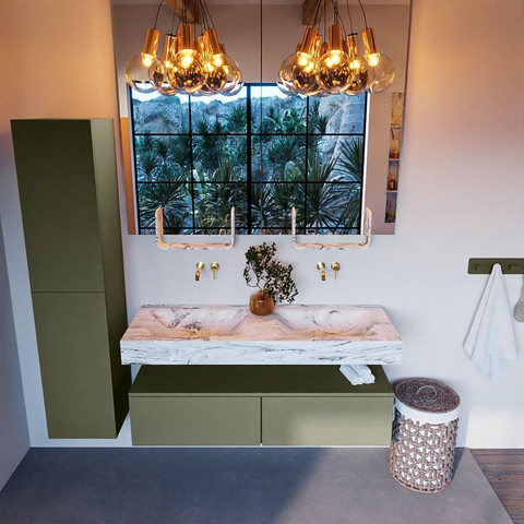 MONDIAZ ALAN - DLUX Badkamermeubelset - 130cm - onderkast - Army - 2 lades - vrijhangende wastafel - 2 wasbakken - 0 kraangaten - Glace