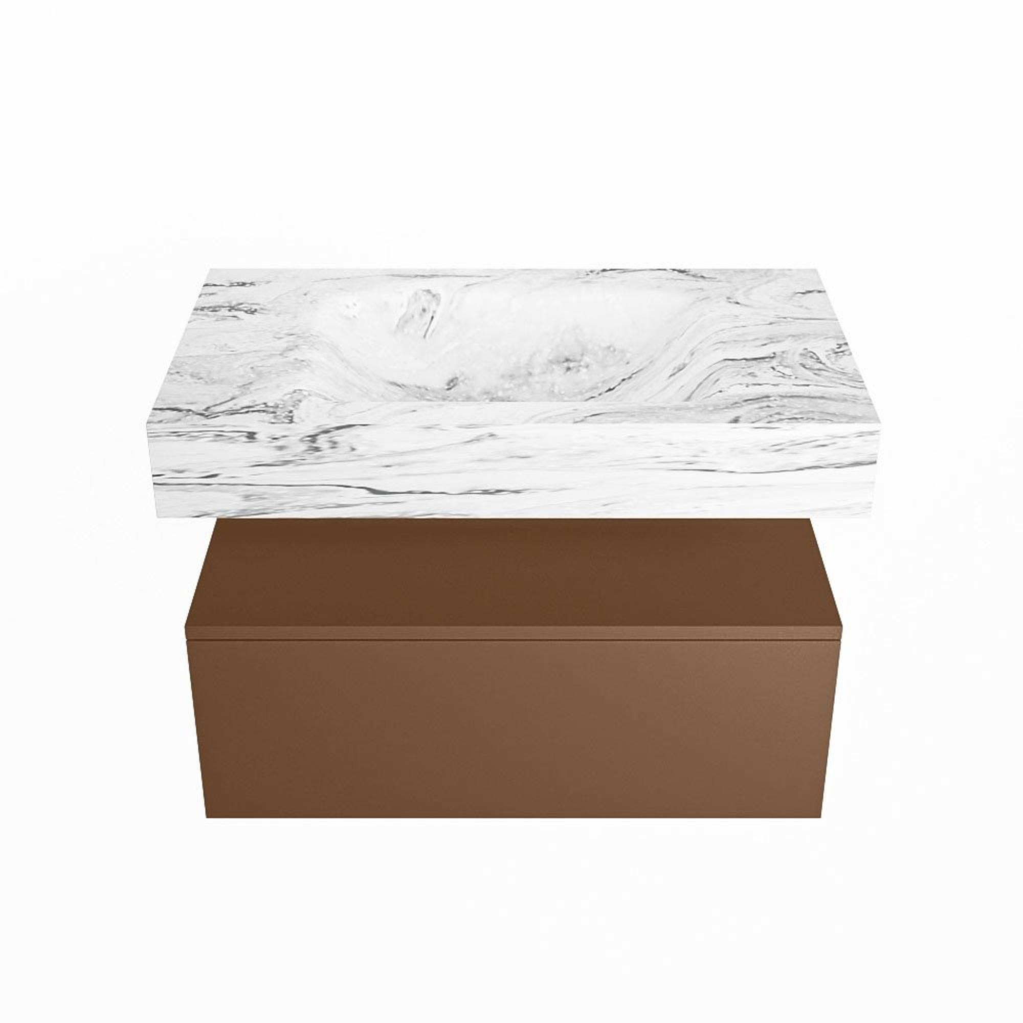 MONDIAZ ALAN - DLUX Badkamermeubelset - 80cm - onderkast - Rust - 1 lade - vrijhangende wastafel - wasbak midden - 1 kraangat - Glace