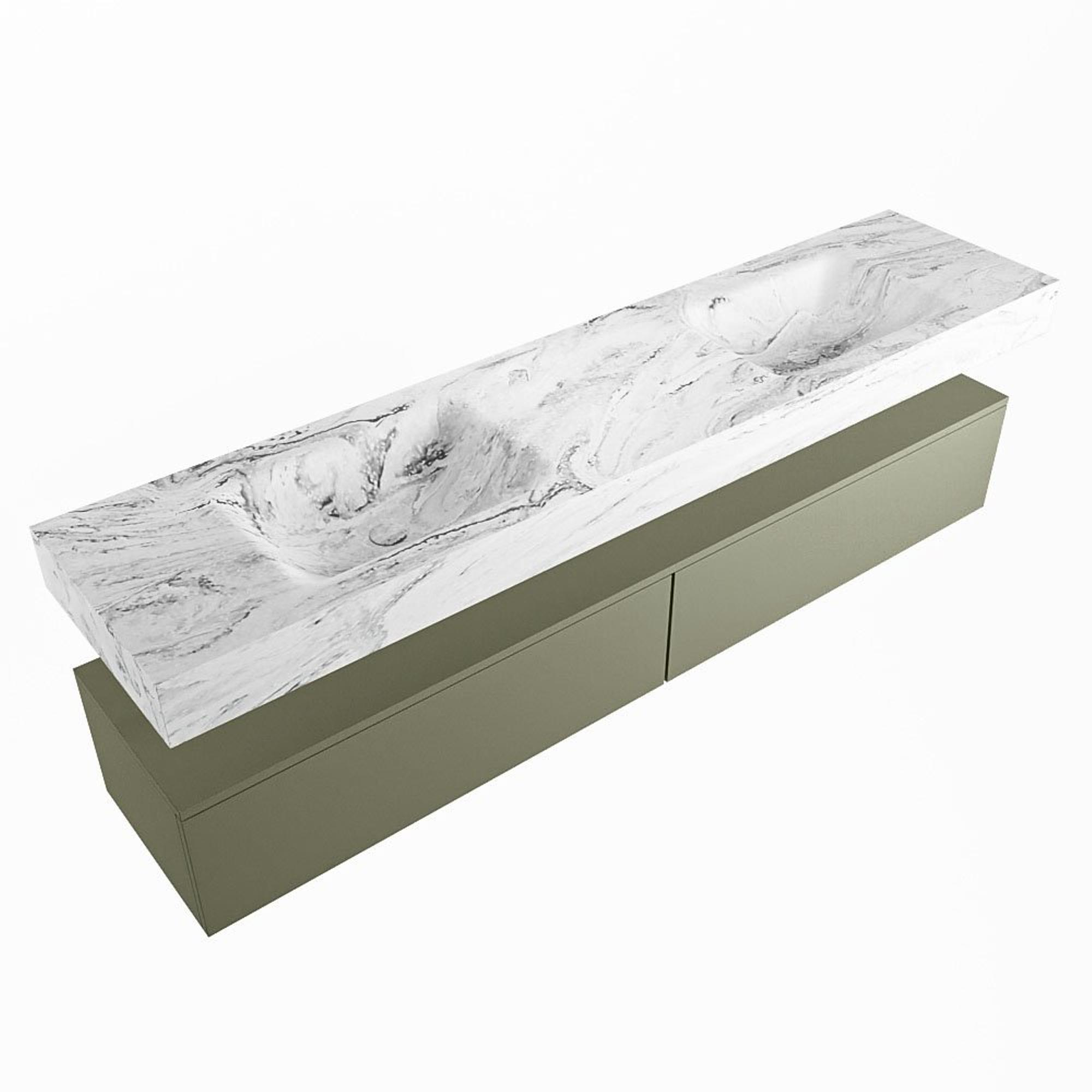 MONDIAZ ALAN - DLUX Badkamermeubelset - 200cm - onderkast - Army - 2 lades - vrijhangende wastafel - 2 wasbakken - 2 kraangaten - Glace