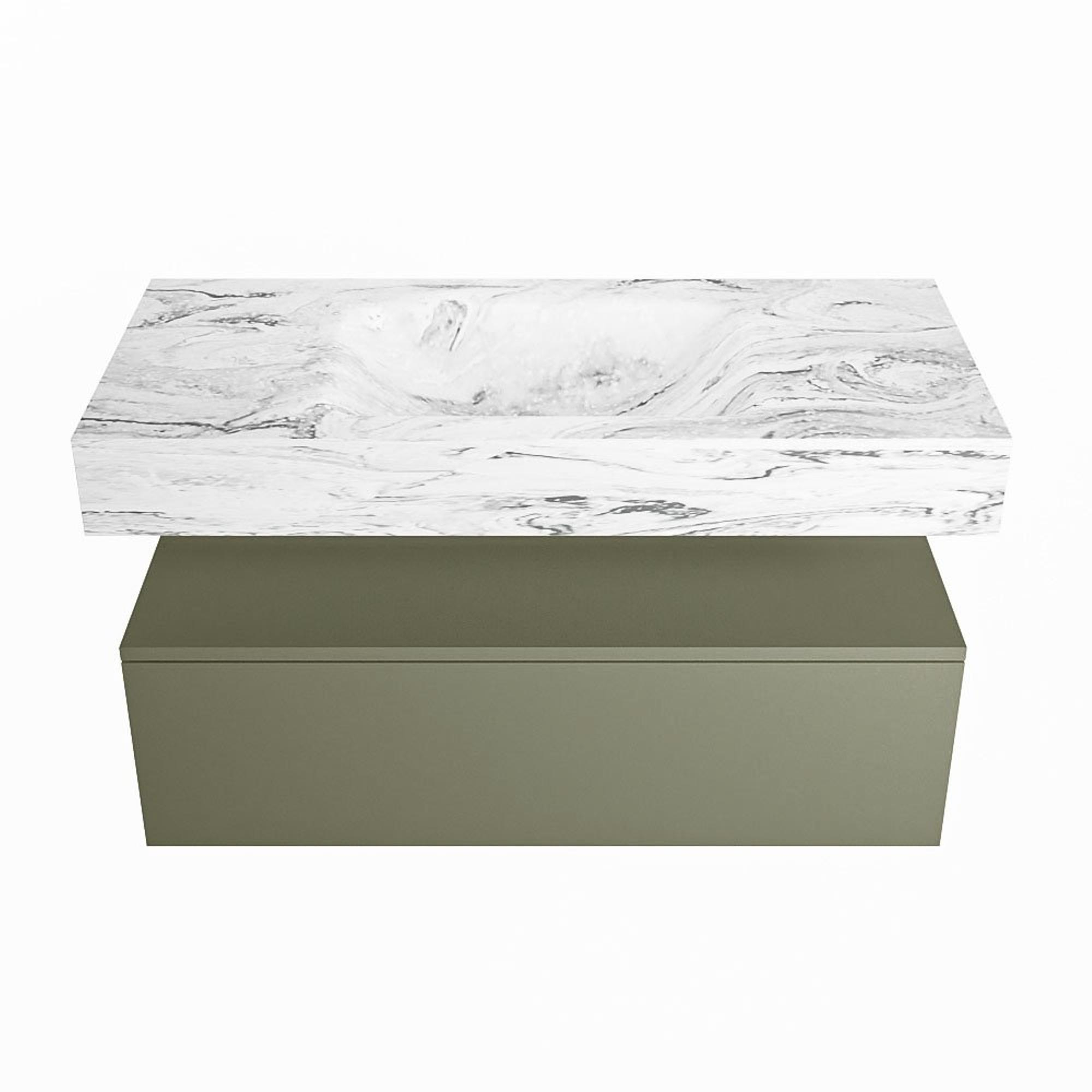 MONDIAZ ALAN - DLUX Badkamermeubelset - 100cm - onderkast - Army - 1 lade - vrijhangende wastafel - wasbak midden - 1 kraangat - Glace