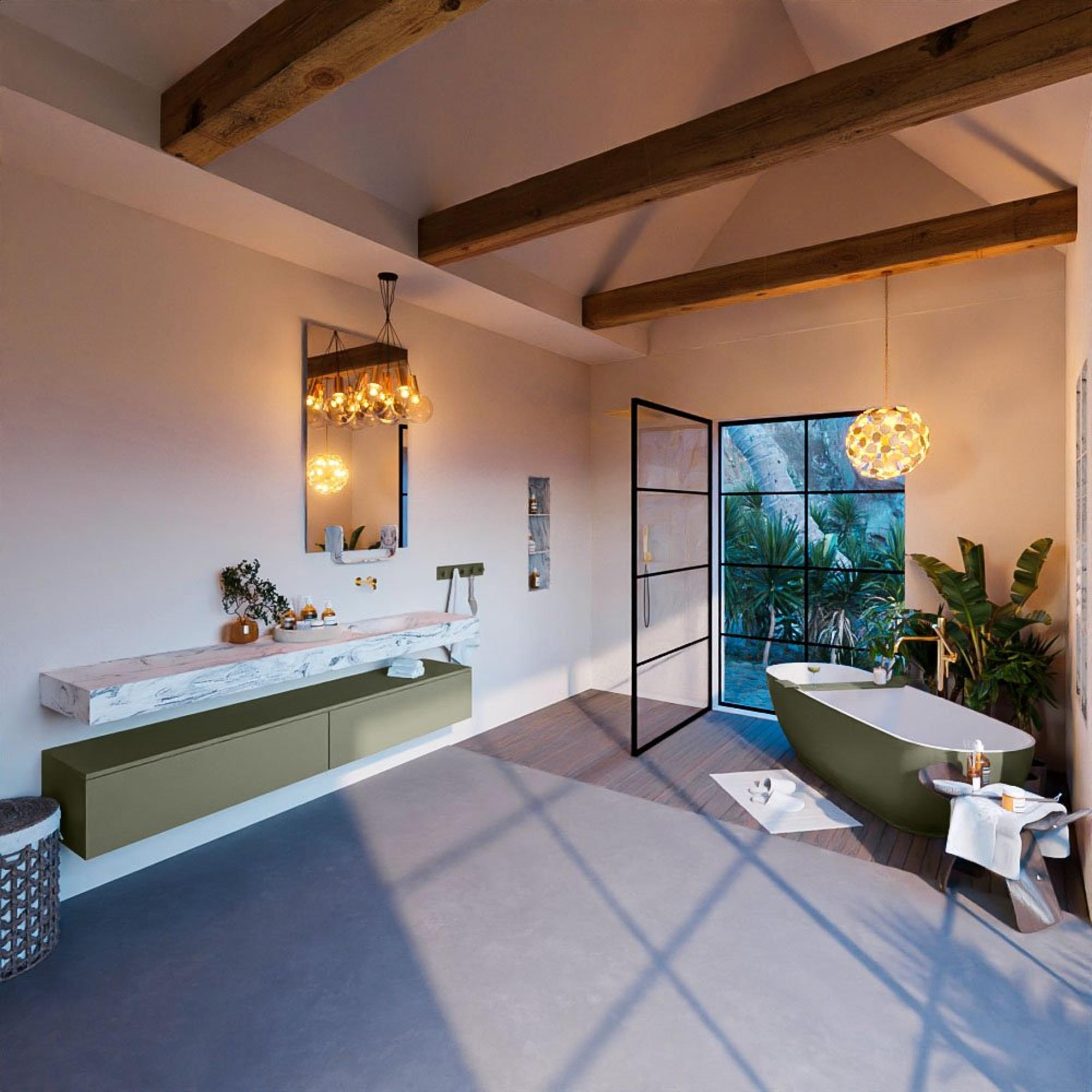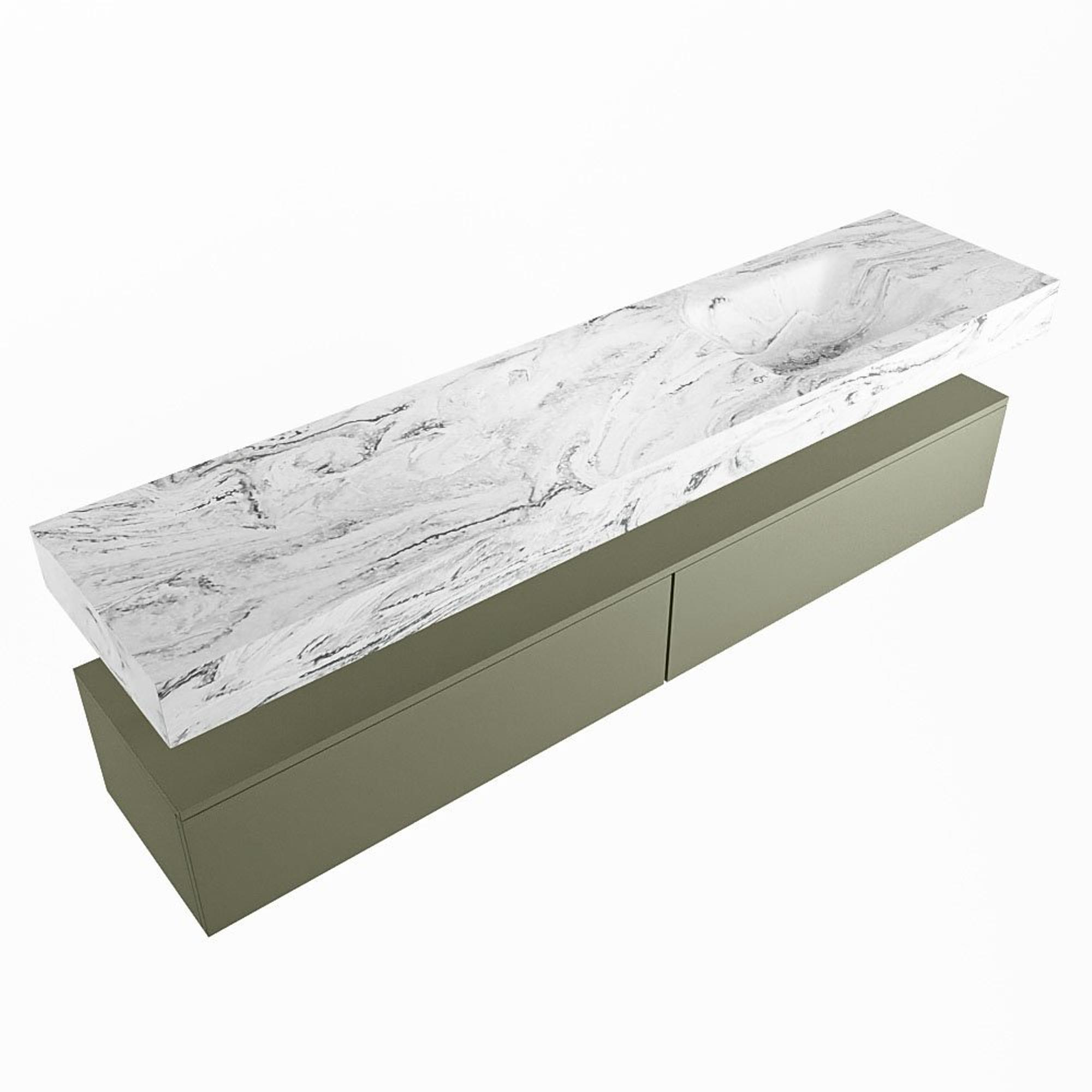 MONDIAZ ALAN - DLUX Badkamermeubelset - 200cm - onderkast - Army - 2 lades - vrijhangende wastafel - wasbak rechts - 0 kraangaten - Glace