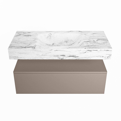 MONDIAZ ALAN - DLUX Badkamermeubelset - 100cm - onderkast - Smoke - 1 lade - vrijhangende wastafel - wasbak midden - 1 kraangat - Glace