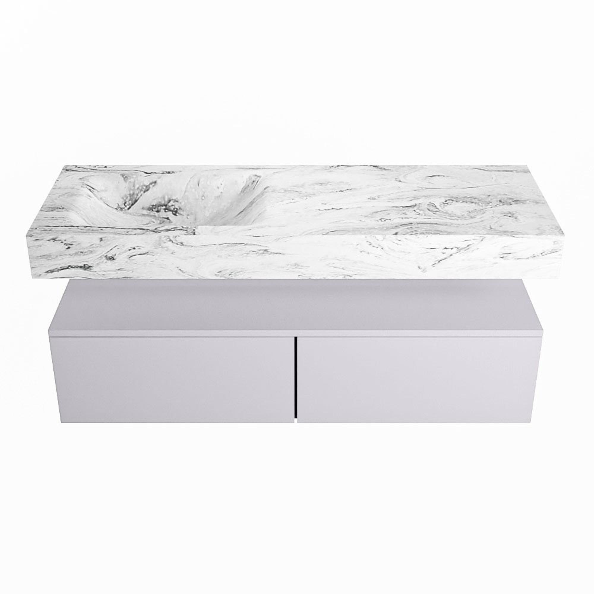 MONDIAZ ALAN - DLUX Badkamermeubelset - 130cm - onderkast - Cale - 2 lades - vrijhangende wastafel - wasbak links - 0 kraangaten - Glace