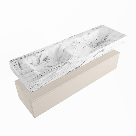 MONDIAZ ALAN - DLUX Badkamermeubelset - 150cm - onderkast - Linen - 1 lade - vrijhangende wastafel - 2 wasbakken - 2 kraangaten - Glace