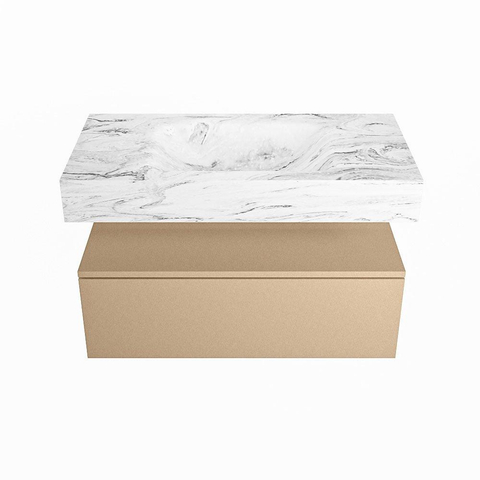 MONDIAZ ALAN - DLUX Badkamermeubelset - 90cm - onderkast - Oro - 1 lade - vrijhangende wastafel - wasbak midden - 0 kraangaten - Glace