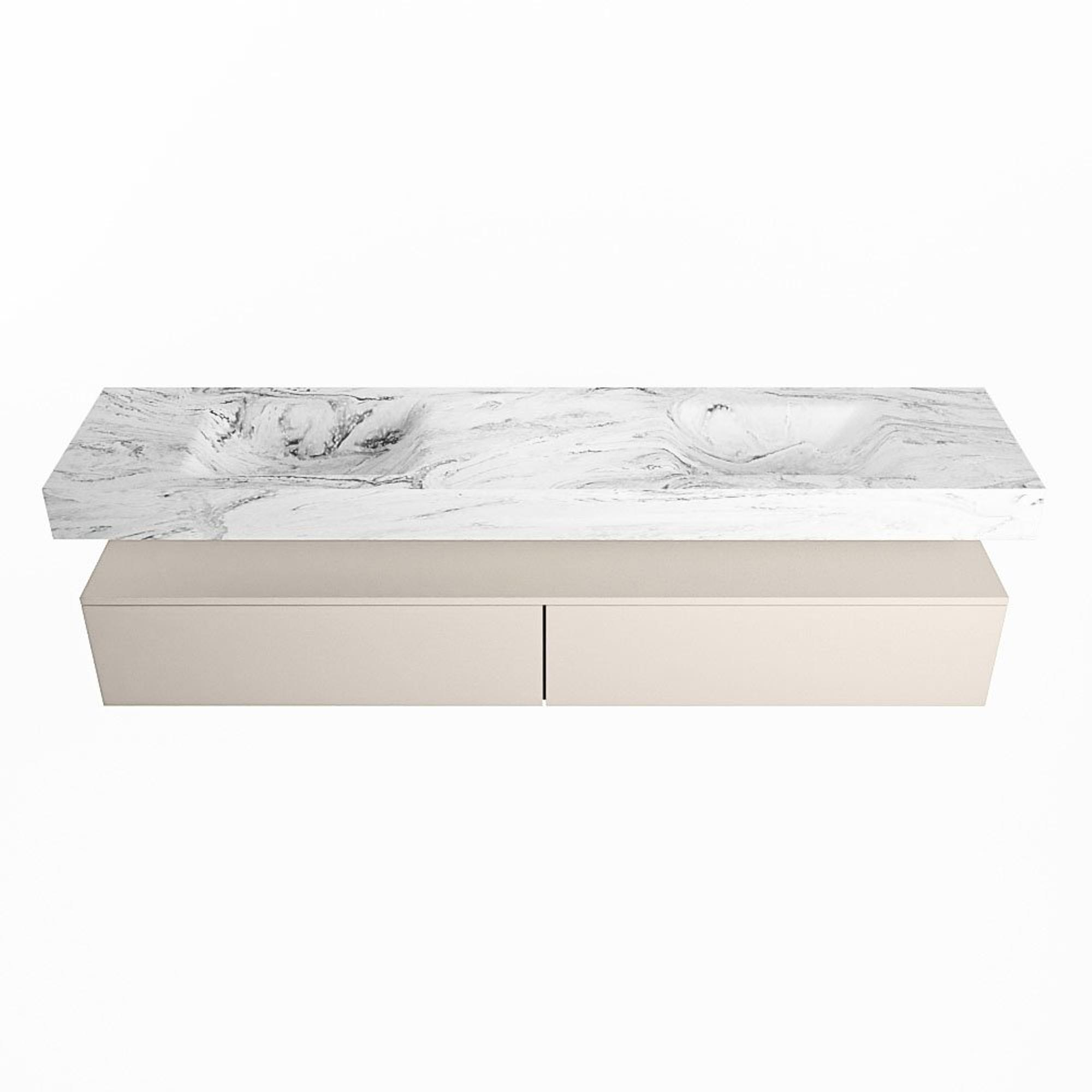 MONDIAZ ALAN - DLUX Badkamermeubelset - 200cm - onderkast - Linen - 2 lades - vrijhangende wastafel - 2 wasbakken - 2 kraangaten - Glace