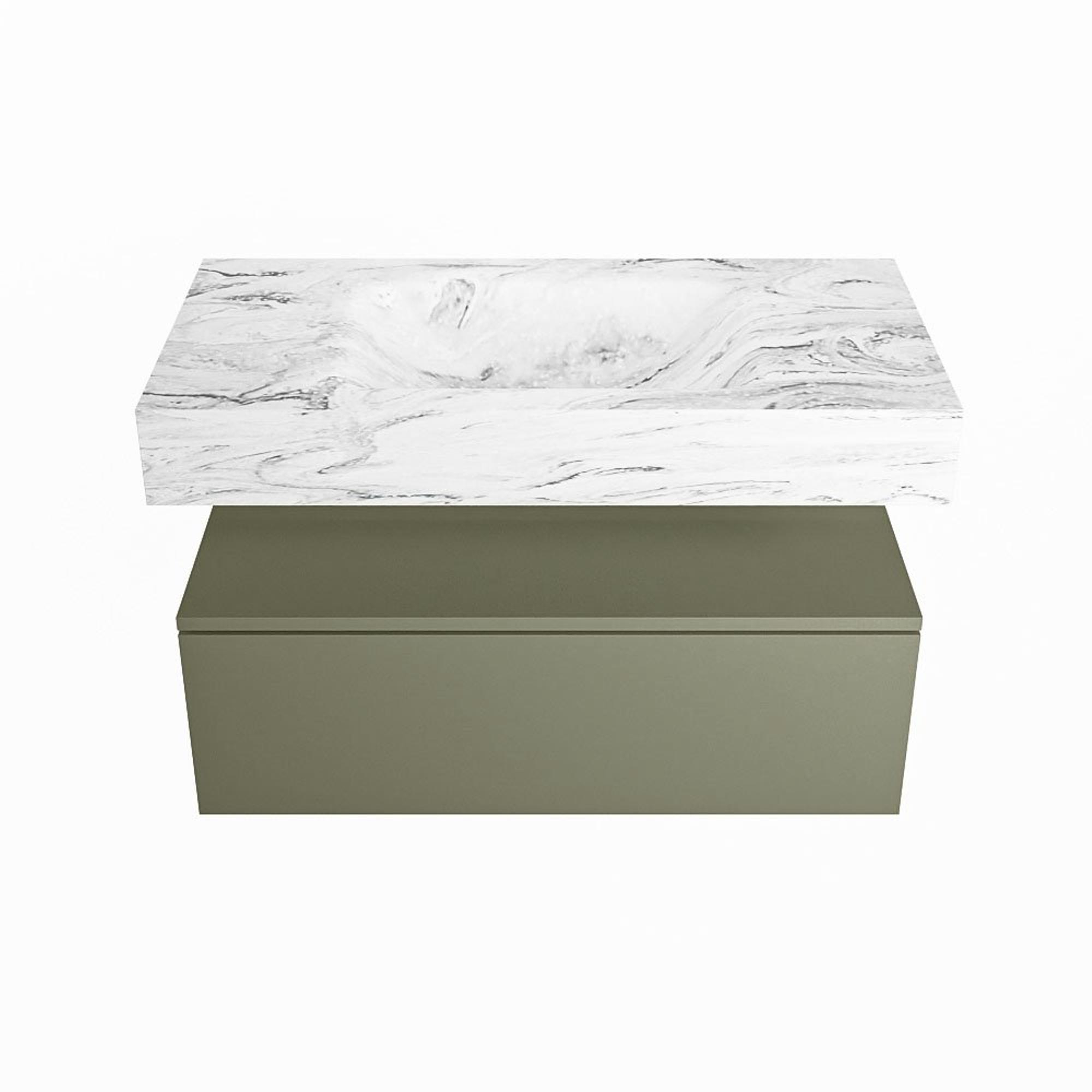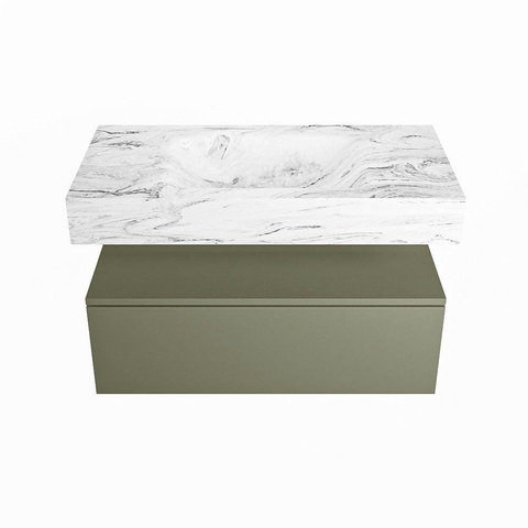 MONDIAZ ALAN - DLUX Badkamermeubelset - 90cm - onderkast - Army - 1 lade - vrijhangende wastafel - wasbak midden - 0 kraangaten - Glace