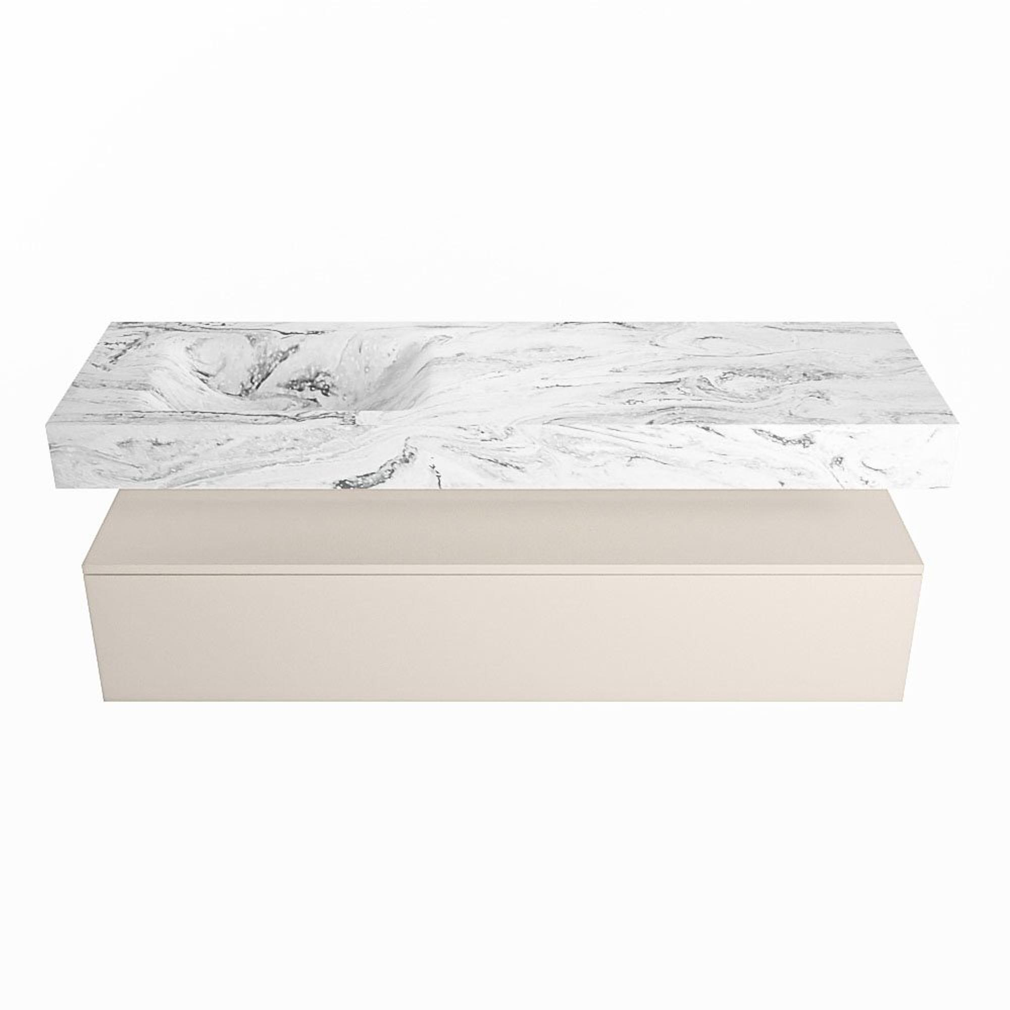 MONDIAZ ALAN - DLUX Badkamermeubelset - 150cm - onderkast - Linen - 1 lade - vrijhangende wastafel - wasbak links - 0 kraangaten - Glace