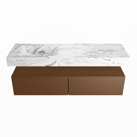 MONDIAZ ALAN - DLUX Badkamermeubelset - 150cm - onderkast - Rust - 2 lades - vrijhangende wastafel - wasbak links - 1 kraangat - Glace