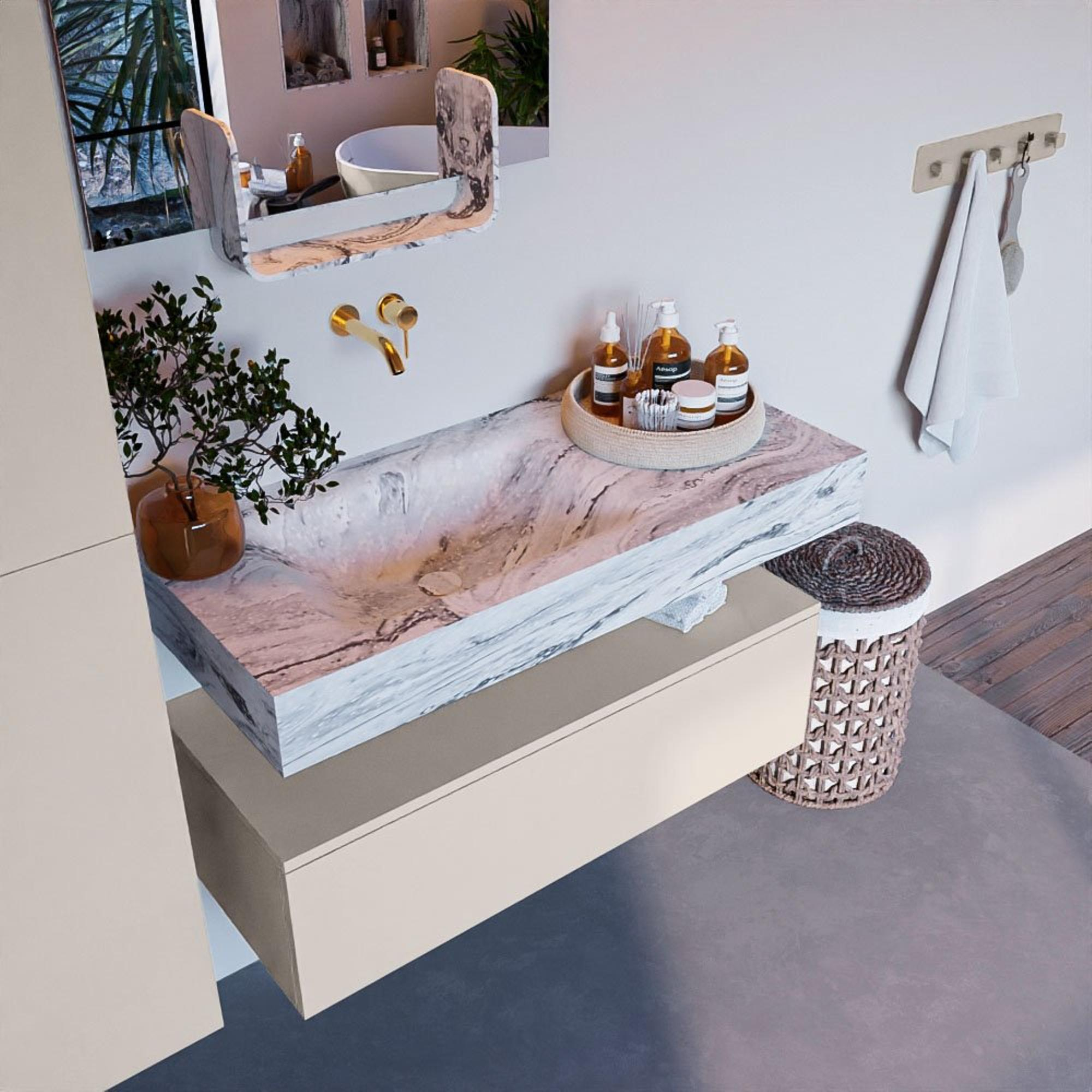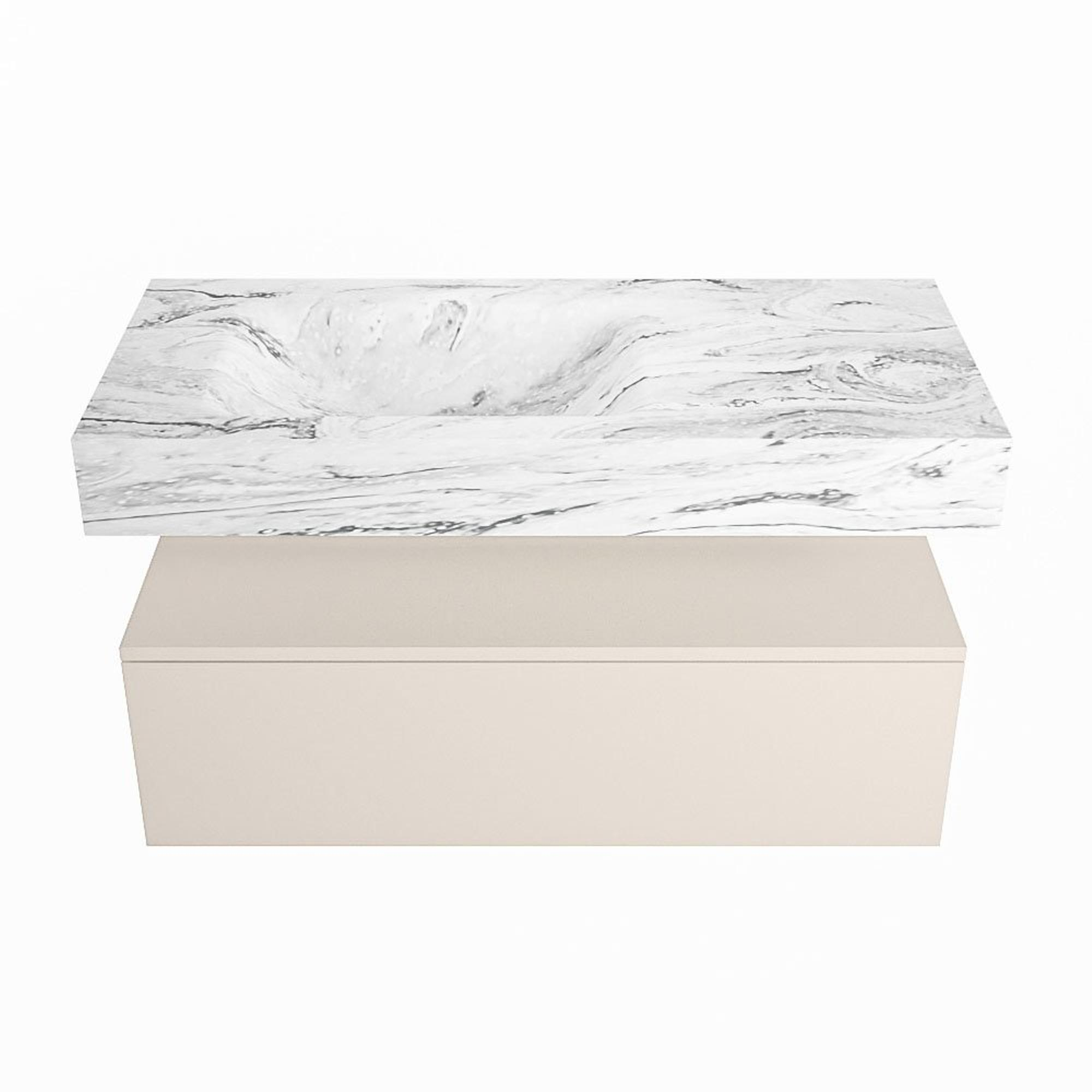 MONDIAZ ALAN - DLUX Badkamermeubelset - 100cm - onderkast - Linen - 1 lade - vrijhangende wastafel - wasbak links - 0 kraangaten - Glace