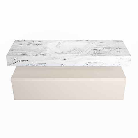 MONDIAZ ALAN - DLUX Badkamermeubelset - 130cm - onderkast - Linen - 1 lade - vrijhangende wastafel - wasbak midden - 0 kraangaten - Glace