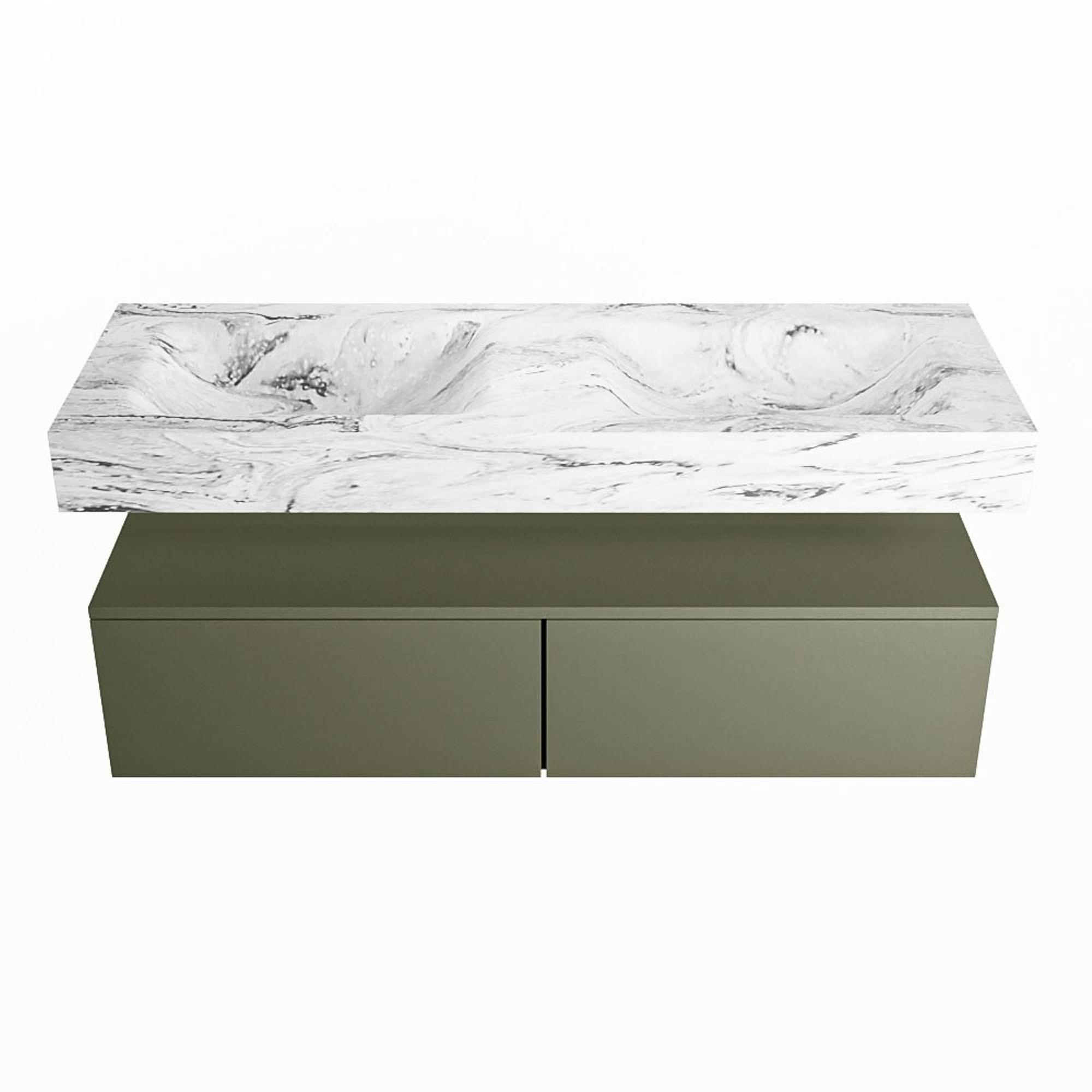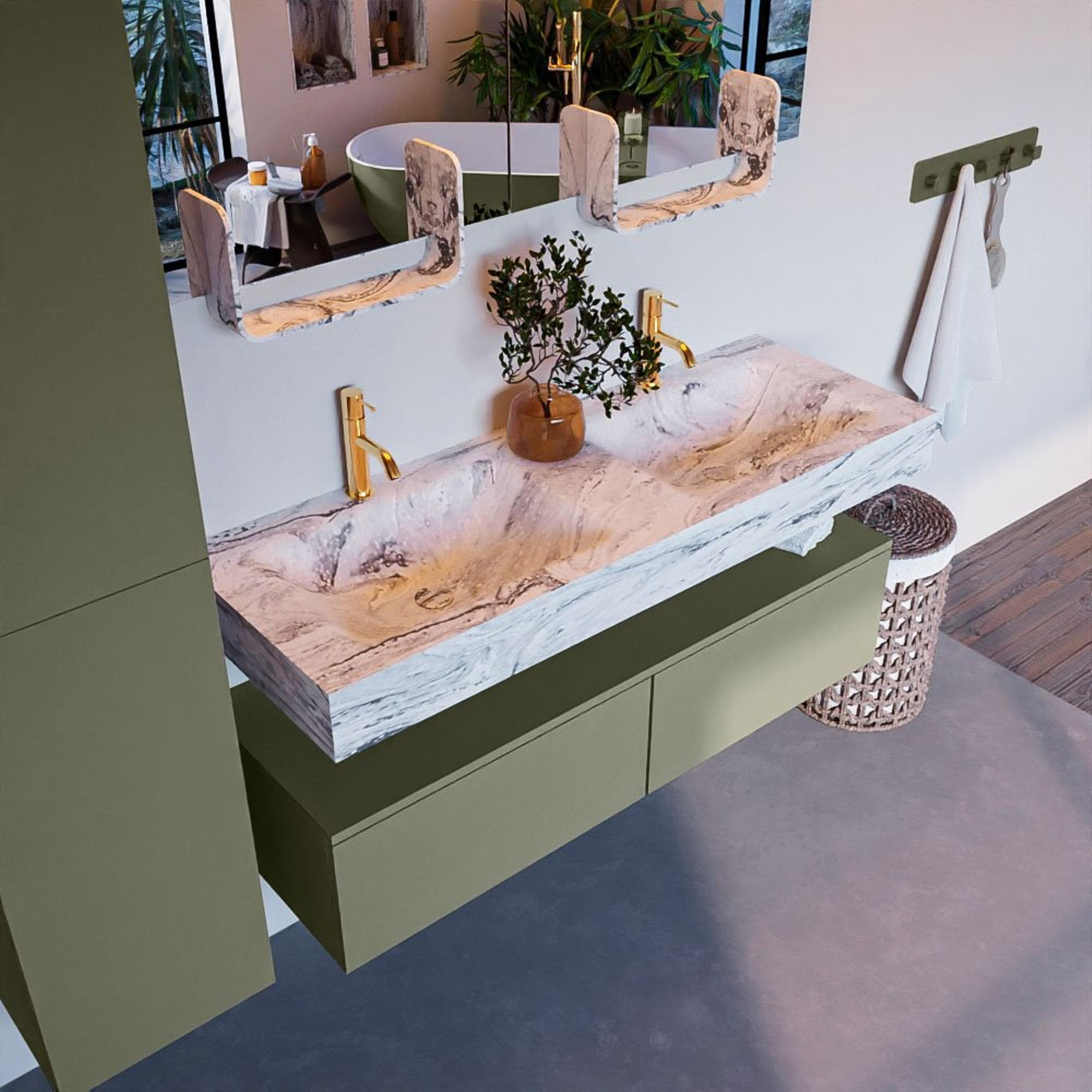 MONDIAZ ALAN - DLUX Badkamermeubelset - 130cm - onderkast - Army - 2 lades - vrijhangende wastafel - 2 wasbakken - 2 kraangaten - Glace