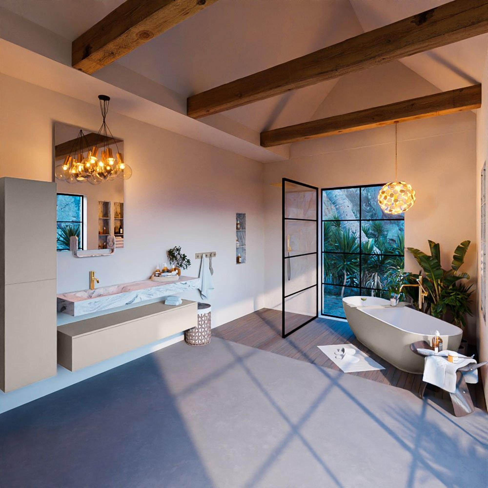 De MONDIAZ ALAN - DLUX badkamermeubelset straalt een moderne en eigentijdse sfeer uit. De strakke lijnen, de Linen afwerking en het vrijhangende ontwerp zorgen voor een minimalistische look die perfect past in een hedendaagse badkamer. De combinatie van functionaliteit en design maakt dit meubelstuk een must-have voor wie op zoek is naar een eigentijdse uitstraling.