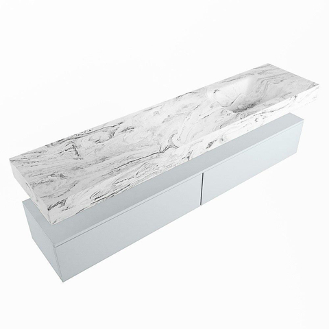 MONDIAZ ALAN - DLUX Badkamermeubelset - 200cm - onderkast - Clay - 2 lades - vrijhangende wastafel - wasbak rechts - 0 kraangaten - Glace