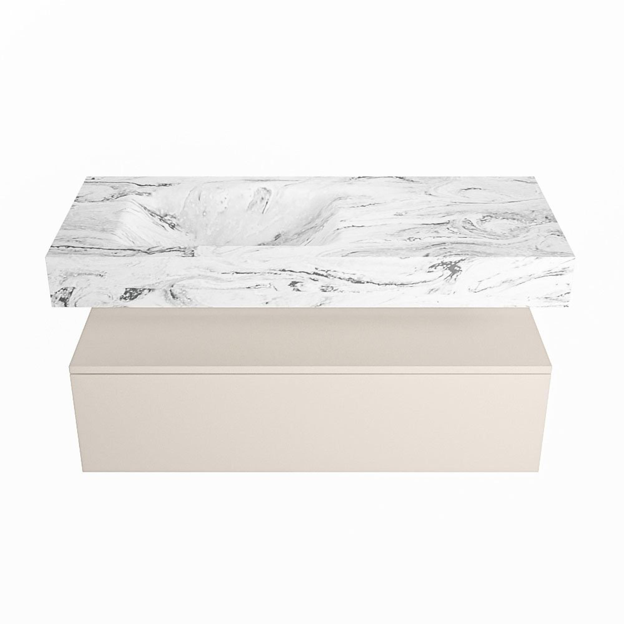 MONDIAZ ALAN - DLUX Badkamermeubelset - 110cm - onderkast - Linen - 1 lade - vrijhangende wastafel - wasbak links - 0 kraangaten - Glace