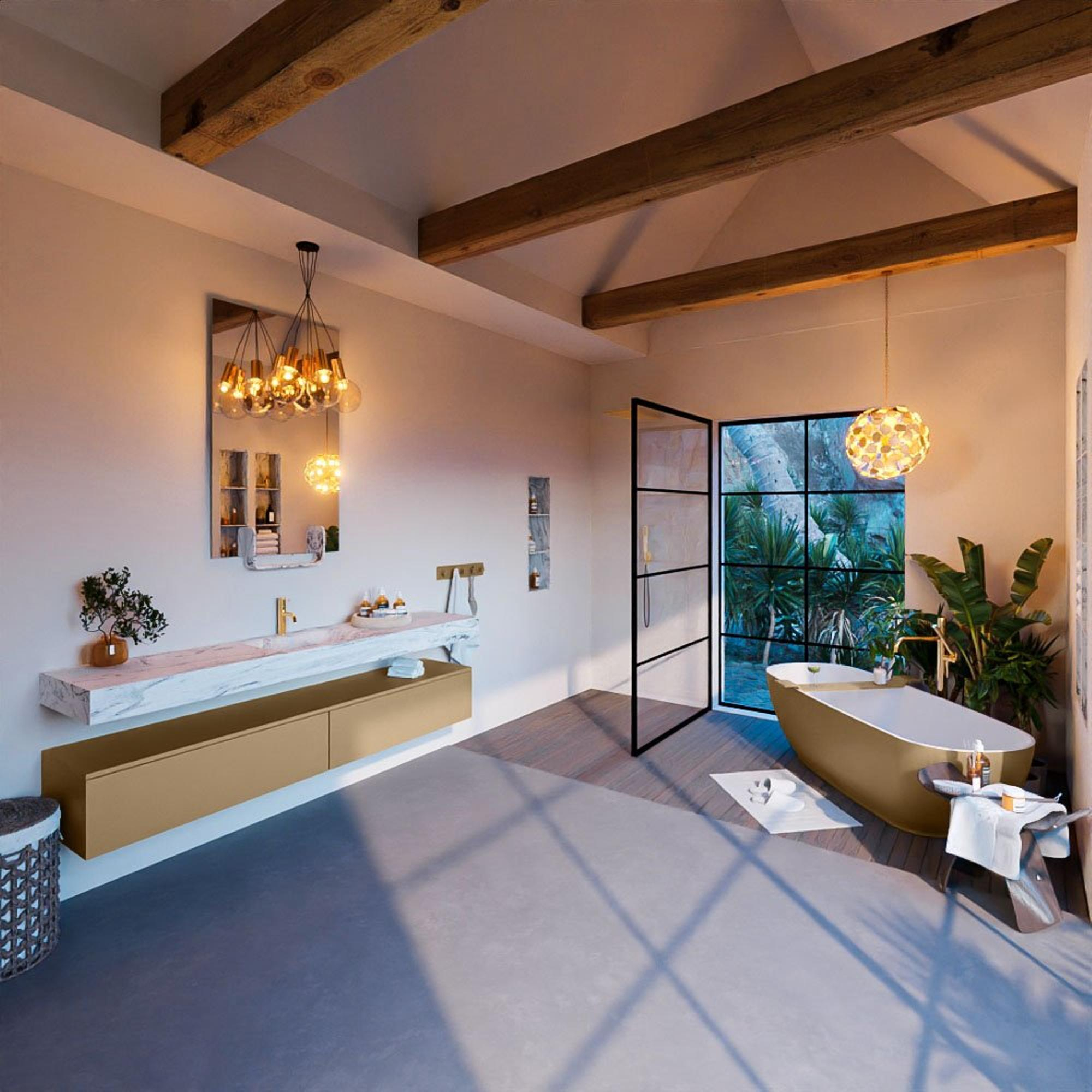 MONDIAZ ALAN - DLUX Badkamermeubelset - 200cm - onderkast - Oro - 2 lades - vrijhangende wastafel - wasbak midden - 1 kraangat - Glace