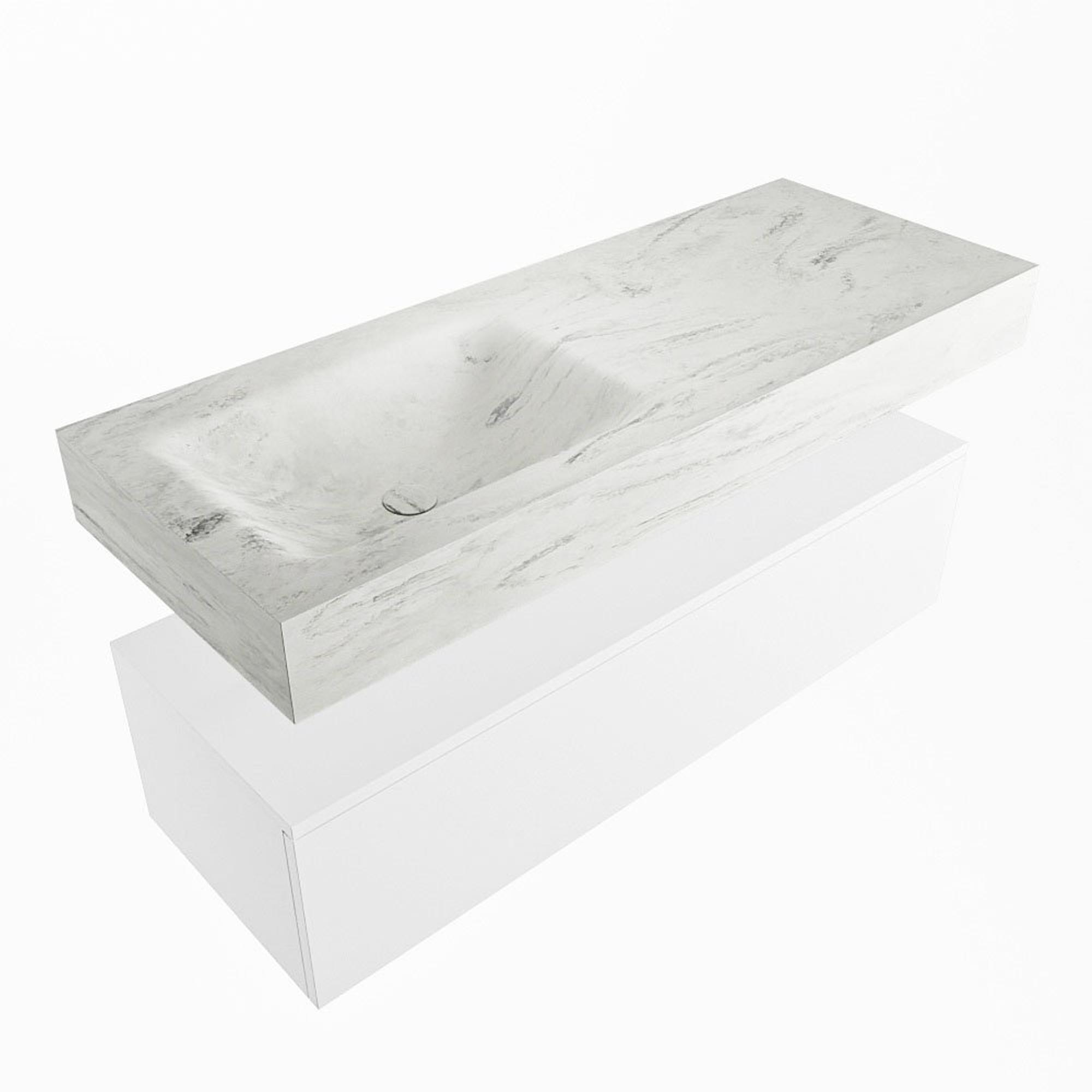 MONDIAZ ALAN - DLUX Badkamermeubelset - 120cm - onderkast - Talc - 1 lade - vrijhangende wastafel - wasbak links - 0 kraangaten - Opalo