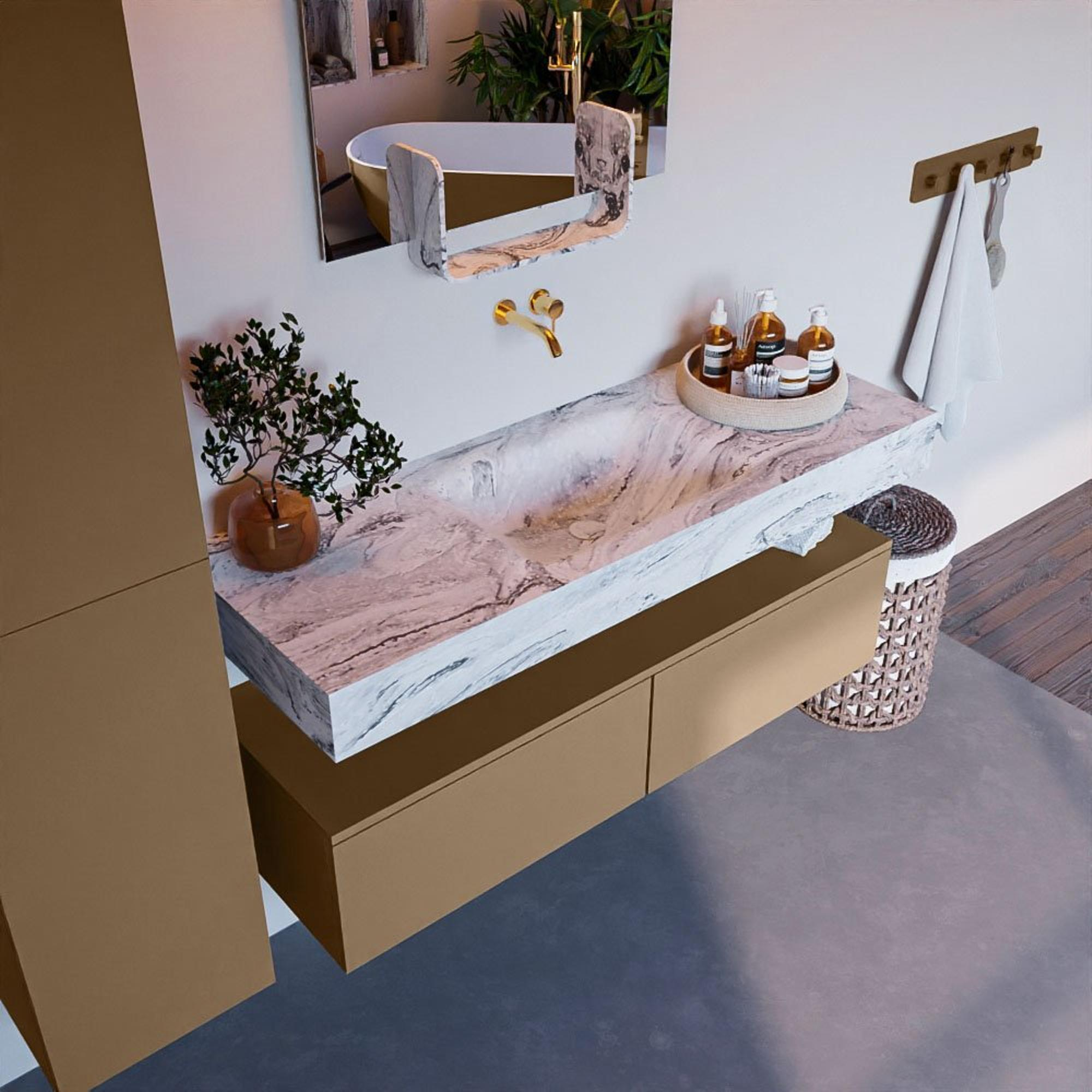 MONDIAZ ALAN - DLUX Badkamermeubelset - 130cm - onderkast - Oro - 2 lades - vrijhangende wastafel - wasbak midden - 0 kraangaten - Glace