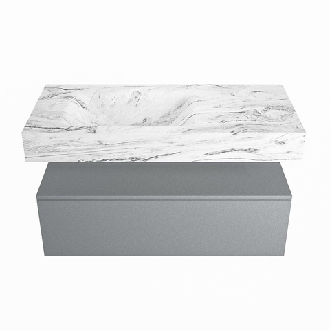 MONDIAZ ALAN - DLUX Badkamermeubelset - 100cm - onderkast - Plata - 1 lade - vrijhangende wastafel - wasbak links - 1 kraangat - Glace