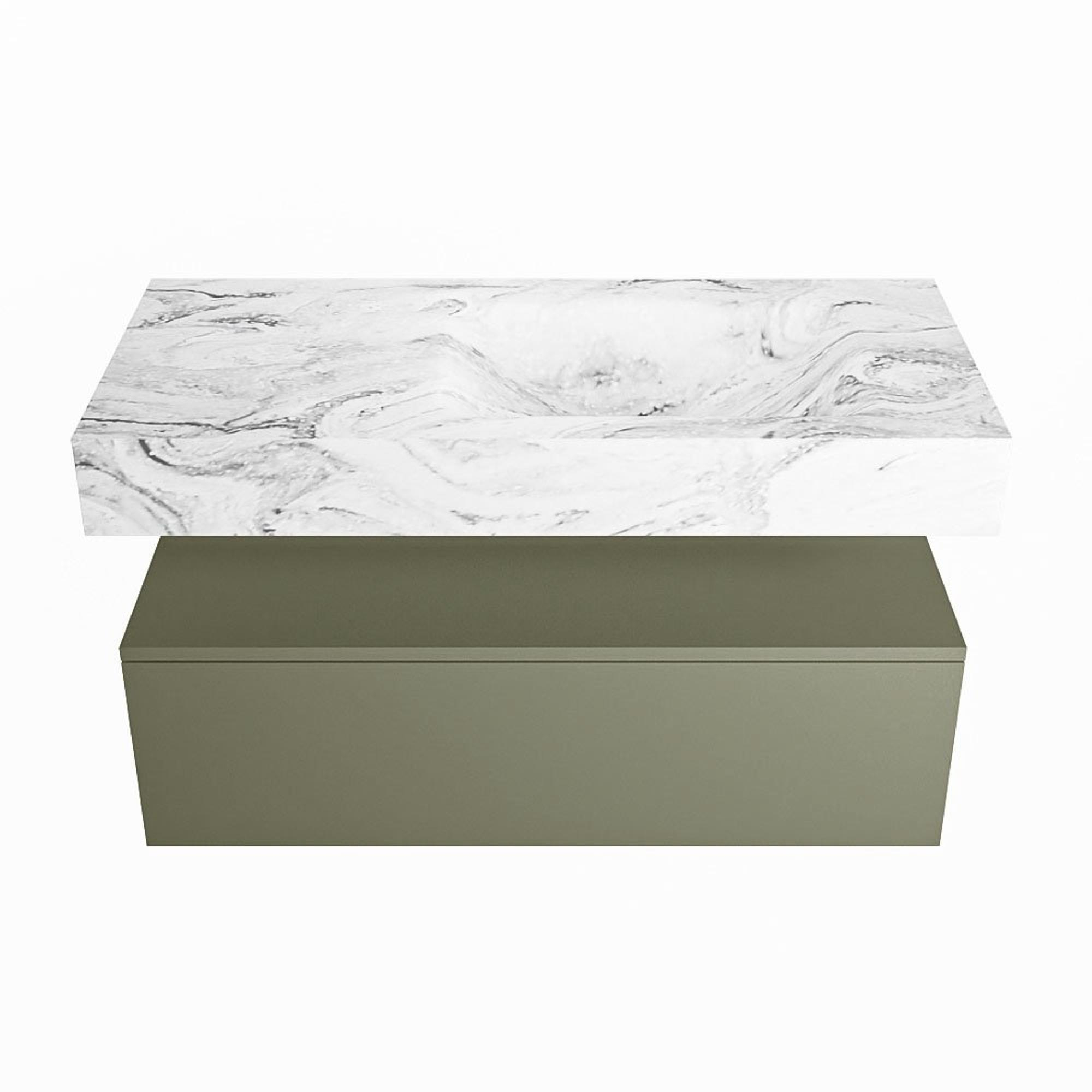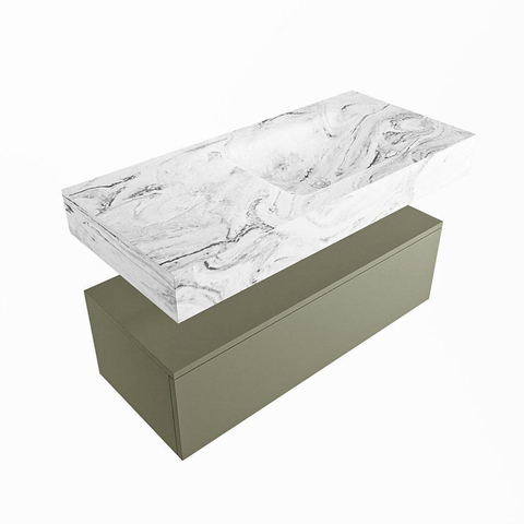 MONDIAZ ALAN - DLUX Badkamermeubelset - 100cm - onderkast - Army - 1 lade - vrijhangende wastafel - wasbak rechts - 0 kraangaten - Glace