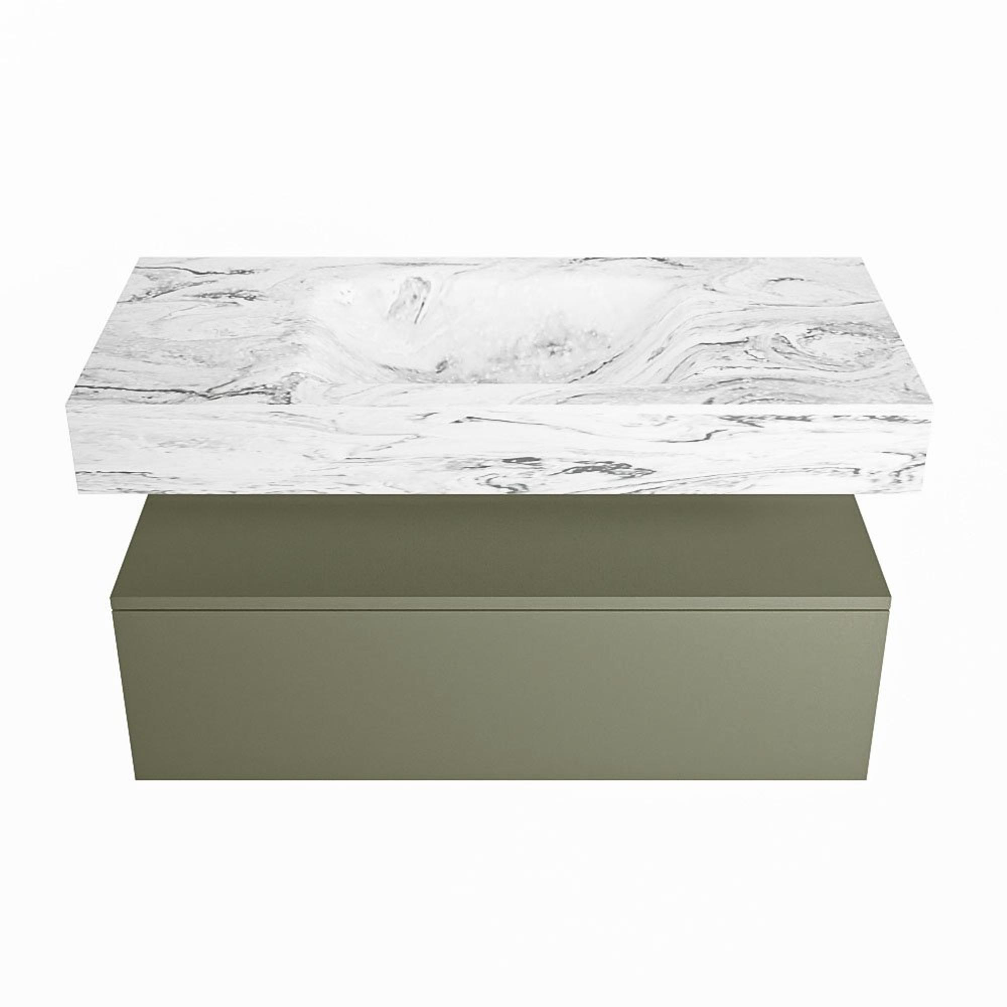 MONDIAZ ALAN - DLUX Badkamermeubelset - 100cm - onderkast - Army - 1 lade - vrijhangende wastafel - wasbak midden - 0 kraangaten - Glace