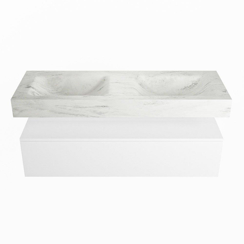 MONDIAZ ALAN - DLUX Badkamermeubelset - 130cm - onderkast - Talc - 1 lade - vrijhangende wastafel - 2 wasbakken - 0 kraangaten - Opalo