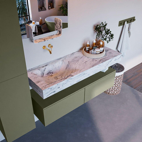 MONDIAZ ALAN - DLUX Badkamermeubelset - 130cm - onderkast - Army - 2 lades - vrijhangende wastafel - wasbak links - 0 kraangaten - Glace
