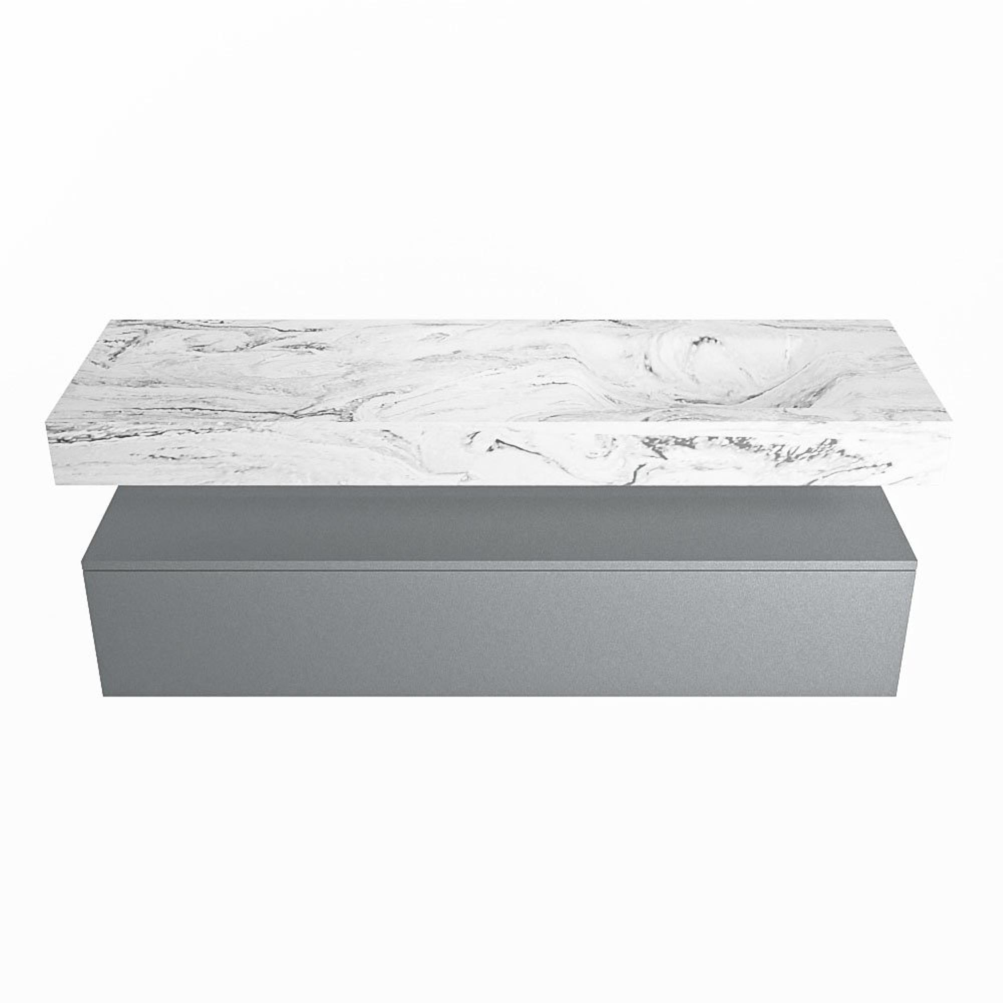 MONDIAZ ALAN - DLUX Badkamermeubelset - 150cm - onderkast - Plata - 1 lade - vrijhangende wastafel - wasbak rechts - 0 kraangaten - Glace