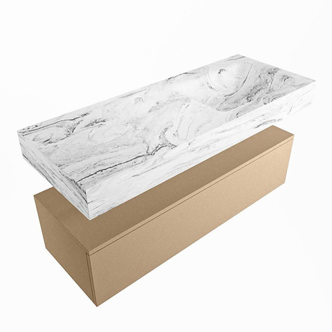 MONDIAZ ALAN - DLUX Badkamermeubelset - 120cm - onderkast - Oro - 1 lade - vrijhangende wastafel - wasbak rechts - 1 kraangat - Glace