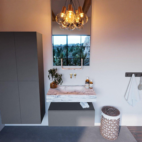 De MONDIAZ ALAN-DLUX badkamermeubelset is ontworpen met een moderne esthetiek in gedachten. De strakke lijnen en minimalistische vormgeving creëren een eigentijdse uitstraling die perfect is voor een eigentijdse badkamer. De combinatie van de vrijhangende wastafel en de slanke onderkast zorgt voor een ruimtelijk gevoel, terwijl de lade discreet opbergruimte biedt voor al je badkamerspullen.