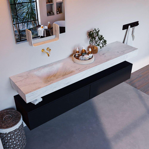 MONDIAZ ALAN - DLUX Badkamermeubelset - 200cm - onderkast - Urban - 2 lades - vrijhangende wastafel - wasbak links - 0 kraangaten - Opalo