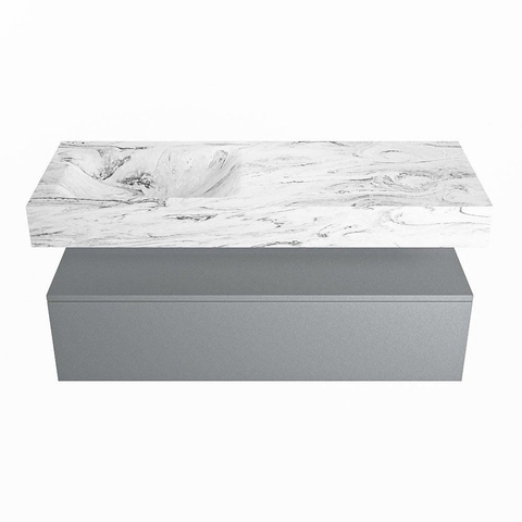 MONDIAZ ALAN - DLUX Badkamermeubelset - 120cm - onderkast - Plata - 1 lade - vrijhangende wastafel - wasbak links - 0 kraangaten - Glace