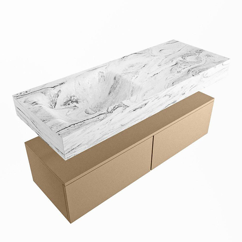 MONDIAZ ALAN - DLUX Badkamermeubelset - 120cm - onderkast - Oro - 2 lades - vrijhangende wastafel - wasbak links - 0 kraangaten - Glace