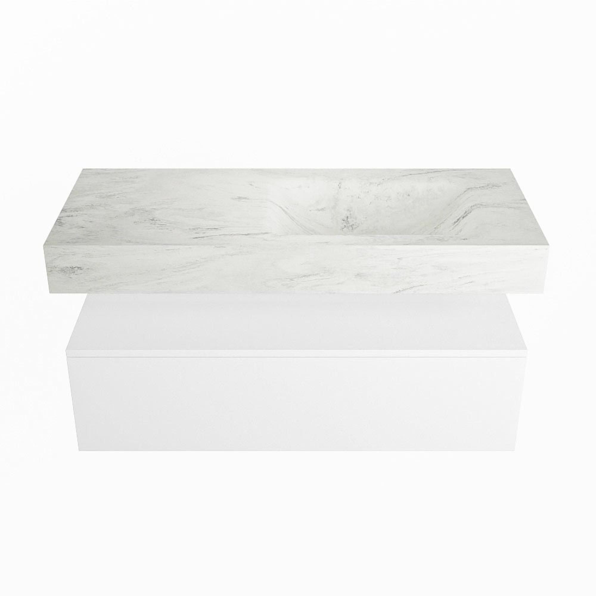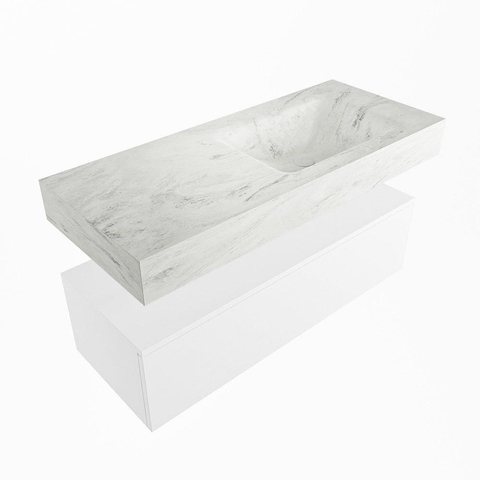 MONDIAZ ALAN - DLUX Badkamermeubelset - 110cm - onderkast - Talc - 1 lade - vrijhangende wastafel - wasbak rechts - 1 kraangat - Opalo