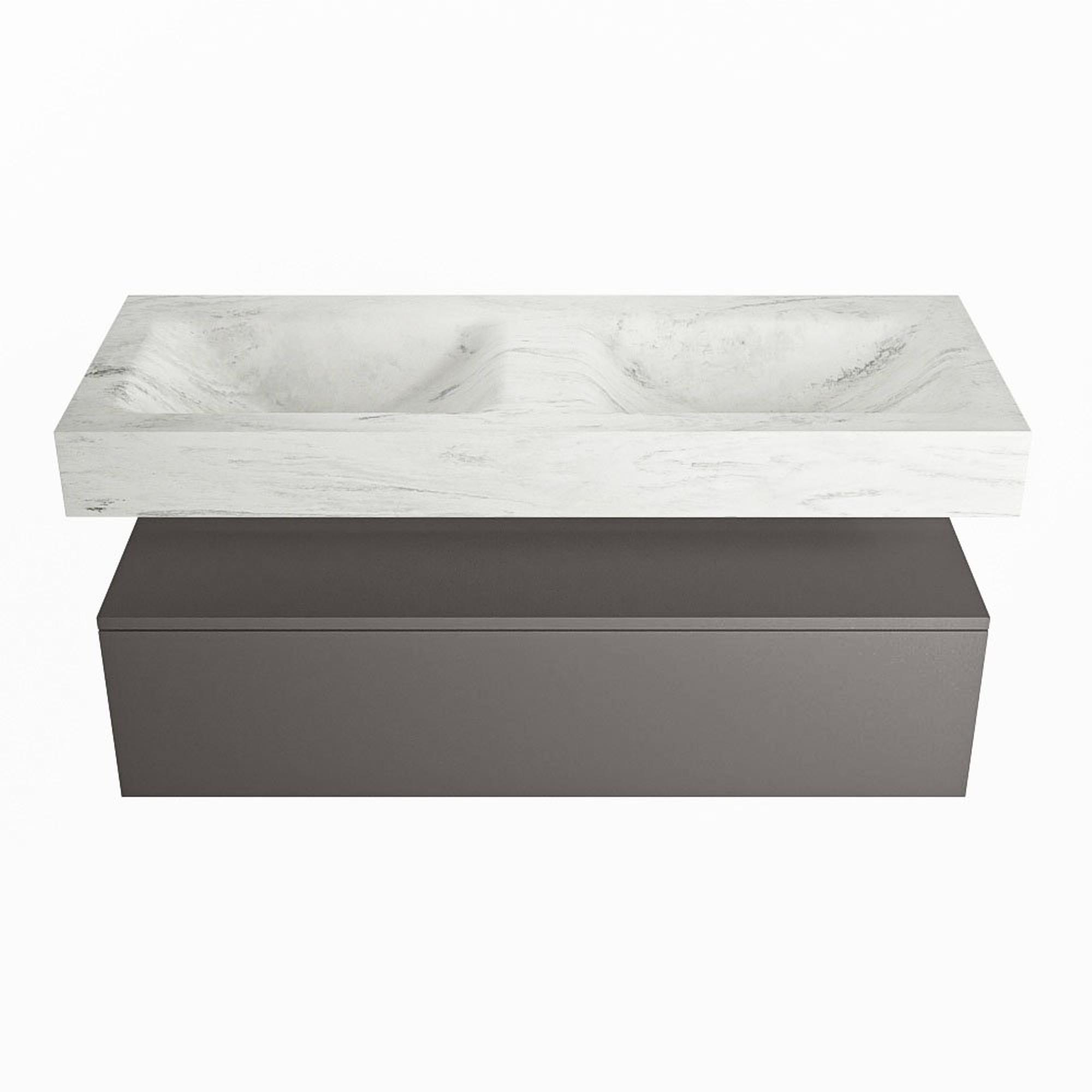 MONDIAZ ALAN - DLUX Badkamermeubelset - 120cm - onderkast - Dark grey - 1 lade - vrijhangende wastafel - 2 wasbakken - 2 kraangaten - Opalo