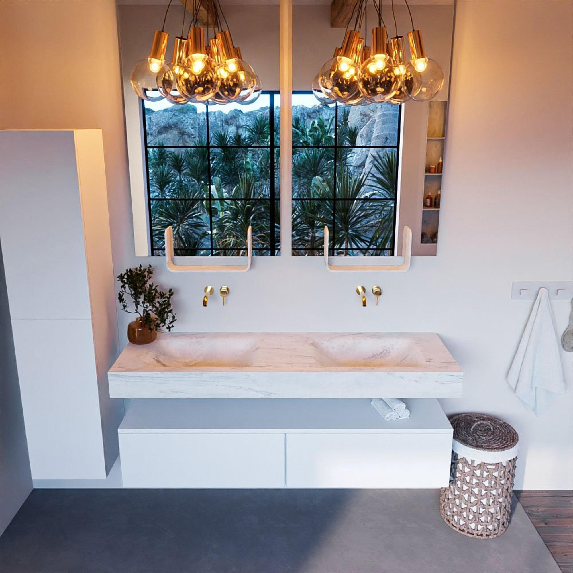 MONDIAZ ALAN - DLUX Badkamermeubelset - 150cm - onderkast - Talc - 2 lades - vrijhangende wastafel - 2 wasbakken - 0 kraangaten - Opalo