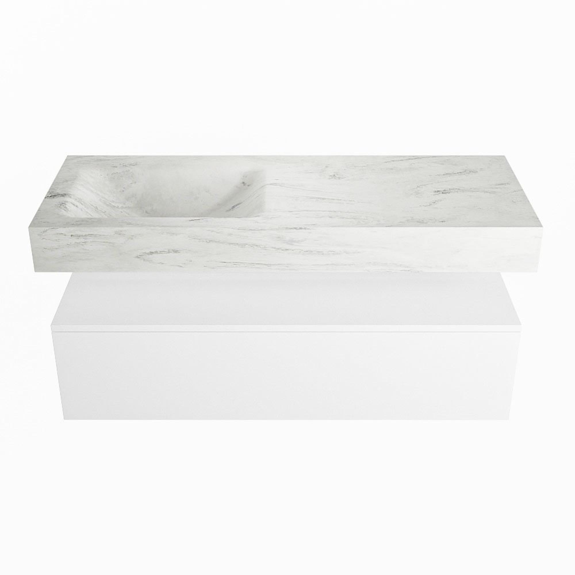 MONDIAZ ALAN - DLUX Badkamermeubelset - 120cm - onderkast - Talc - 1 lade - vrijhangende wastafel - wasbak links - 1 kraangat - Opalo
