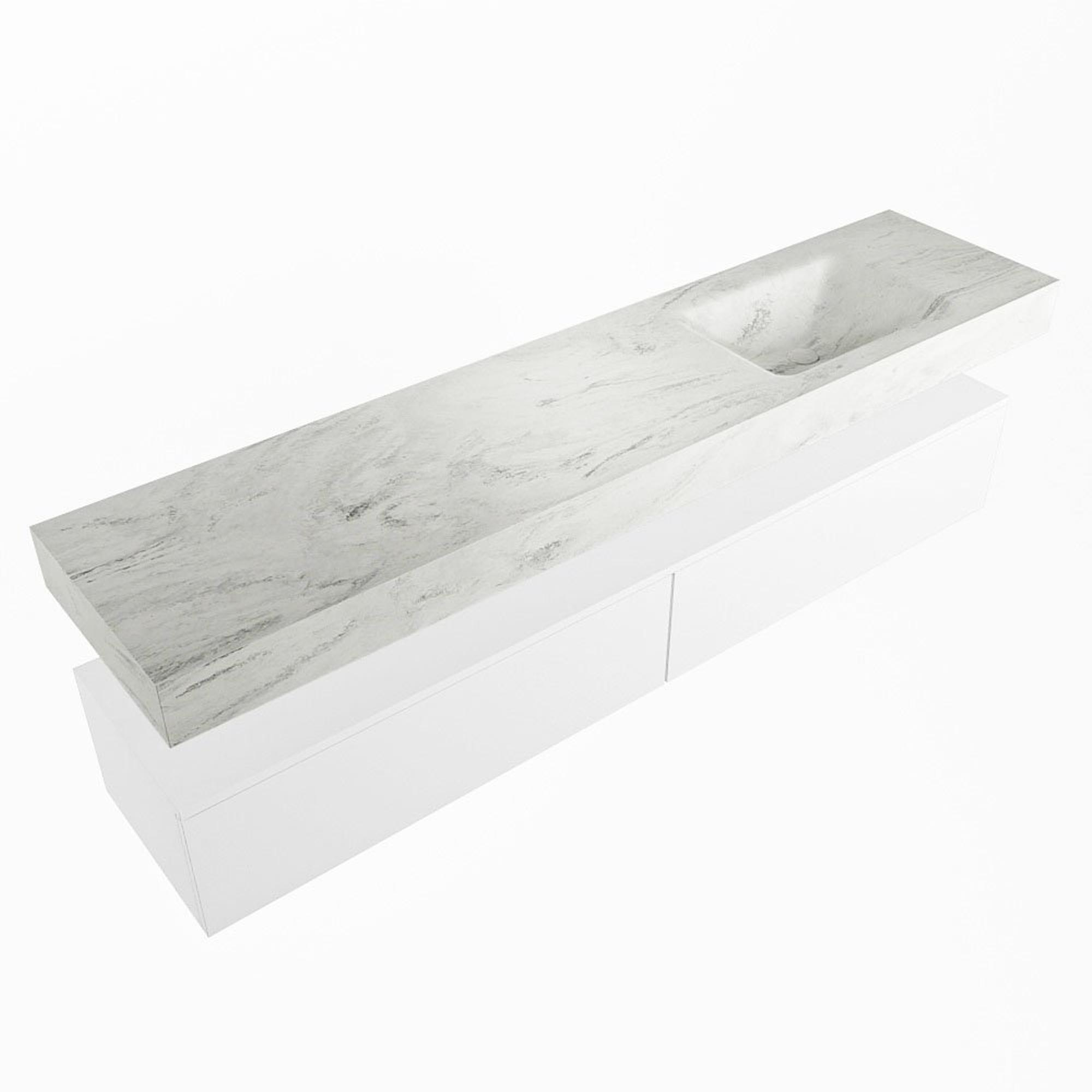 MONDIAZ ALAN - DLUX Badkamermeubelset - 200cm - onderkast - Talc - 2 lades - vrijhangende wastafel - wasbak rechts - 1 kraangat - Opalo