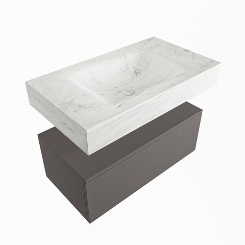 MONDIAZ ALAN - DLUX Badkamermeubelset - 80cm - onderkast - Dark grey - 1 lade - vrijhangende wastafel - wasbak midden - 0 kraangaten - Opalo