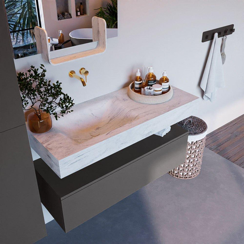 MONDIAZ ALAN - DLUX Badkamermeubelset - 110cm - onderkast - Dark grey - 1 lade - vrijhangende wastafel - wasbak links - 0 kraangaten - Opalo